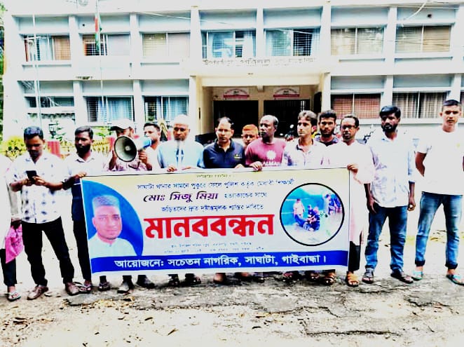 সিজু হত্যার বিচারের দাবিতে সাঘাটায় মানববন্ধন
