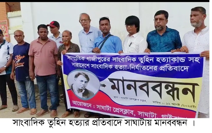 সাঘাটায় সাংবাদিক তুহিন হত্যার প্রতিবাদে মানববন্ধন