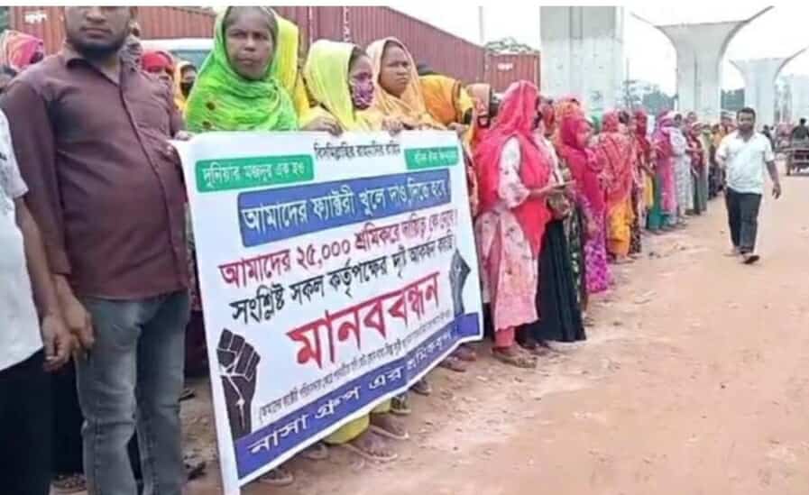 আশুলিয়ায় নাসা গ্রুপের কারখানা খুলে দেওয়ার দাবিতে শ্রমিকদের মানববন্ধন