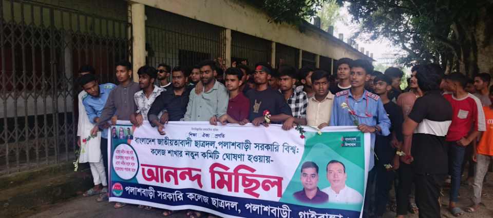 মোঃ সাগর সরকার ,স্টাফ রিপোর্টার: গাইবান্ধার পলাশবাড়ী সরকারি বিশ্বঃ বিদ্যালয় কলেজ শাখার নবগঠিত কমিটি গঠন হওয়ায় আনন্দ মিছিল অনুষ্ঠিত হয়। ২৭ জুলাই রোববার দুপুরে পলাশবাড়ী সরকারি বিশ্বঃ কলেজ শাখার আয়োজনে আনন্দ মিছিলটি সরকারি বিশ্বঃ বিদ্যালয় কলেজ চত্তর থেকে শুরু হয়ে কলেজ মাঠ প্রদক্ষিণ শেষ পলাশবাড়ী পৌর শহরের প্রধান প্রধান শড়ক প্রদক্ষিণ করেন। আনন্দ মিছিলে উপস্থিত ছিলেন,পলাশবাড়ী উপজেলা যুবদলের সিঃ যুগ্ম আহবায়ক সাগর সরকার মিনু, পলাশবাড়ী উপজেলা ছাত্র দলের আহবায়ক আরিয়ান সরকার আরিফ,যুগ্ম আহবায়ক সুহাদ, পৌর জাসাস এর আহবায়ক হানিফ,পলাশবাড়ী সরকারি বিশ্বঃ কলেজ শাখার সাবেক সিঃ যুগ্ম আহবায়ক রাজিব,পলাশবাড়ী সরকারি বিশ্বঃ কলেজ শাখার নব গঠিত কমিটির সভাপতি মেজবাহ আহম্মেদ প্রান্ত,সাধারন সম্পাদক রায়হান আহম্মেদ,সিঃ সহ সভাপতি শাহাজান মিয়া,সহ সভাপতিদ্বয়,আজাদ সরকার,লিটন সরকার,আহাদ, শাকিল মিয়া,সাব্বির হোসেন,শাহাদত ইসলাম, রাজিব মিয়া, তানভির আলম,সিঃ যুগ্ম সাধারন সম্পাদক মারুফ আকন্দ, যুগ্ম সাধারন সম্পাদকদ্বয়, নুর মোহাম্মদ,রুহুল আমিন রোহান, রাকিব মিয়া,লিখন সরকার,ফাতেমা আক্তার মিষ্টি, তুহিন,সুর্বণা আক্তার,সুরাইয়া আক্তার, খোকন মিয়া,সাংগঠনিক সম্পাদক দুলাল মিয়া, সহ সাংগঠনিক সম্পাদক জাহিদ মিয়া,প্রচার সম্পাদক আরিফ শেখ,পৌর যুবদলের যুগ্ম আহবায়ক নয়ন, ইউছুফ মন্ডল লেবু প্রমুখ।