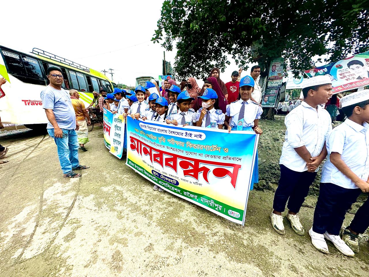 মোঃ আলী শেখ, স্টাফ রিপোর্টার : গত ১৭ জুলাই ২০২৫ ইং তারিখে জারিকৃত পরিপত্রে বৃত্তি পরীক্ষায় কিন্ডারগার্টেন স্কুল গুলোকে বাদ দেওয়ায়। রাজৈর উপজেলার টেকেরহাটে বাসস্ট্যান্ডের গোল চত্বরে, আজ ২৯ জুলাই সকাল ৯.০০ ঘটিকায় মানববন্ধন করে। রাজৈর উপজেলার কিন্ডারগার্টেন অ্যাসোসিয়েশনের ছাত্র-ছাত্রী শিক্ষক-শিক্ষিকা, পরিচালক এবং অভিভাবকবৃন্দ।