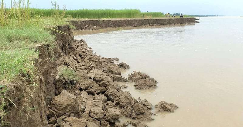 চাঁপাইনবাবগঞ্জ শিবগঞ্জে পদ্মা নদীর ভাঙ্গনে বিলীন হলো ৭০ বাড়িসহ হাজার বিঘা জমি,আম বাগান,বাঁশ বাগান,শিক্ষা প্রতিষ্ঠান,মসজিদ ও গোরস্থান। আরও প্রায় এক শত পরিবার ঝুকির মধ্যে আছে। অসহায় পরিবারগুলো আর্থিক সংকটের কারণে খোলা আকাশের নীচে অনাহারে –অর্ধাহারে দিনযাপন করছে। রবিবার ও সোমবার সরজমিনে দূর্লভপুর ও পাকা ইউনিয়নের ৭/৮টি গ্রাম ঘুরে অসহায় পরিবার গুলোর ভয়াবহ চিত্র পাওযা যায়। দূর্লভপুর ইউনিয়নের ঝাল পাড়া গ্রামের মাদ্রাসা শিক্ষক মাওলানা আব্দুল খালেক জানান গত ২০ দিনে আমাদের গ্রামে ১৪টি বাড়ি,একটি মসজিদ ও প্রায় চারশত বিঘা ফসলি জমি ও গত তিন বছরে প্রায় ৬০ টি বাড়ি ও কয়েকটি শিক্ষা প্রতিষ্ঠান ও এক হাজার বিঘা ফসলি জমি নদী গর্ভে বিলীন হয়প গেছে। পন্ডিত পাড়ার তোহরুল ইসলাম জানান আমরা পাঁচ ভাইসহ মোট ১০টি পরিবার নদীর তীর ঘেষে খোলা আকাশের নীচে বাস করছি। কিন্তু কোন উপায় নেই কোথাও যাবার। তিনি আরো জানান এ বছরে শুধু পন্ডিত পাড়ার প্রায় ১৫টি বাড়ি বিলীন হয়েছে। গত চার বছরে এ গ্রামে ৬০টি বাড়ি,প্রায় দেড় হাজার বিঘা জমি, একটি জামে মসজিদ সহ আম বাগান সহ সব কিছু বিলীন হয়ে গেছে। বাদশাহ পাড়া গ্রামের বাবুল উদ্দীন বলেন এবার চারবার ভাঙ্গনের কবলে পড়লাম । ৩০বিঘা জমি ছিল, আম বাগান ছিল,গরু ছাগল ছিল। সব শেষ হয়ে গেছে। এখন আমি নি:স্ব। তিনি বলেন গত ২০দিনে বাদশাহ পাড়ার ১৫টি বাড়ি বিলীন হয়েছে। তিনি আরো জানানা গত চার বছরে এ গ্রামে প্রায় ৩০০টি বাড়ি, দুইটা জামে মসজিদ,দুইটা প্রাইমারী স্কুল ও দুইটি ওয়াক্তিয়া মসজিদ নদী গর্ভে বিলীন হয়ে গেছে। ৮০ বছরের মুরব্বী সোহবার হোসেন জানান,এবার দিযে পাঁচবার ভাঙ্গনের কবলে পড়লাম। আর পারি না। মনে হচ্ছে পদ্মা নদীর মাঝখানে গিয়ে ভেসে যাই। এদিকে ৯নং ওয়ার্ড কমিনিটি সেন্টারের দায়িত্বরত কর্মকর্তা সোহের রানা জানান, বর্তমানে আটটি প্রাইমারী স্কুল,দুটি হাইস্কুল, দুটি মাদ্রাসা, একটি গোরস্তান, কয়েকটি মসজিদ সহ দ্বোভাগী বাজার ভাঙ্গনের হুমকীর মুখে। মাত্র চারশত মিটার দূরে নদীর অবস্থান।পাকা ইউনিয়নের শরিফুল ইসলাম জানান ছয়বার পদ্মার ভাঙ্গনে পড়ে শেষে আটরশিয়া বাঁধের ওপর অস্থায়ী ভাবে বাড়ি করে বাস করছি। লক্ষিপুর ঘাটে ছোট একটি পান সিগারেটে দোকান আছে,তাও আবার আর্থিক সংকটে ঠিকমত চালাতে পারিনা। একই গ্রামে মুন্টু বলেন গত বছল বাড়ি ভেঙ্গে নদী থেকে একটি দূরে খোলা আকাশের নীচে বাস করছি। বর্তমানে পাঁচফিট দূরে নদীর অবস্থান। জমাজমা সবকিছু নদী গর্ভে। লজ্জায় না পারছি ভিক্ষা করতে, না পাচ্ছি রোজগারে করতে। তবে প্রশাসন বলছেন ভিন্ন কথা। এব্যাপারে সংশ্লিষ্ট ইউপি চেয়ারম্যানগন এখনো ভাঙ্গন কবলিত এলাকা পরিদর্শন করেননি। পাকা ইউপি চেয়ারম্যান আব্দুল
