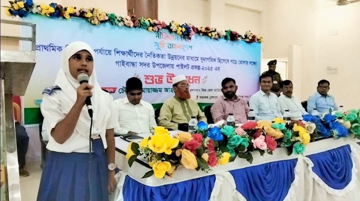 মোঃ মিঠু মিয়া,গাইবান্ধা প্রতিনিধি: গাইবান্ধা জেলার প্রাথমিক বিদ্যালয় পর্যায়ের শিক্ষার্থীদের নৈতিকতা উন্নয়নের মাধ্যমে আগামী দিনের সুনাগরিক হিসেবে গড়ে তোলার লক্ষ্যে জেলা প্রশাসন, গাইবান্ধার উদ্যোগে ‘নীতিবান শিশু, সুখী বাংলাদেশ’ শীর্ষক একটি পাইলট প্রকল্প বাস্তবায়ন করা হচ্ছে।