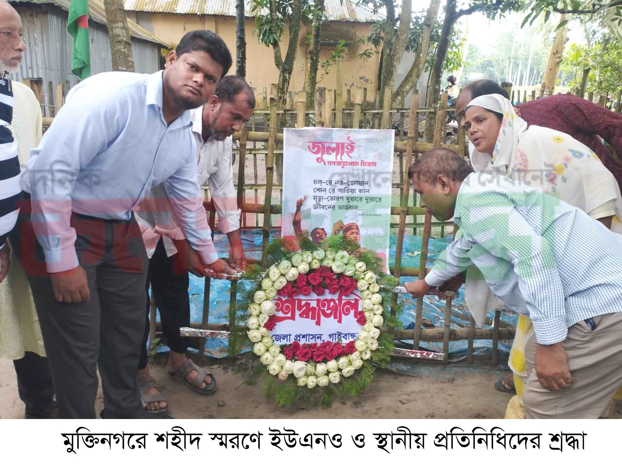 মঙ্গলবার (৫ আগস্ট) সকালে জুলাই গণঅভ্যুত্থান দিবস উপলক্ষে পুষ্পস্তবক অর্পণ করেন সাঘাটা উপজেলা নির্বাহী কর্মকর্তা (ইউএনও) জনাব মীর মোঃ আল কামাহ্ তমাল। এসময় উপস্থিত ছিলেন মুক্তিনগর ইউনিয়ন পরিষদের চেয়ারম্যান আহসান হাবীব, ইউএনও’র প্রশাসনিক কর্মকর্তা জাকারিয়া হাবীব, মশিউর রহমান সহ অন্যান্য স্থানীয় গণ্যমান্য ব্যক্তিবর্গ।