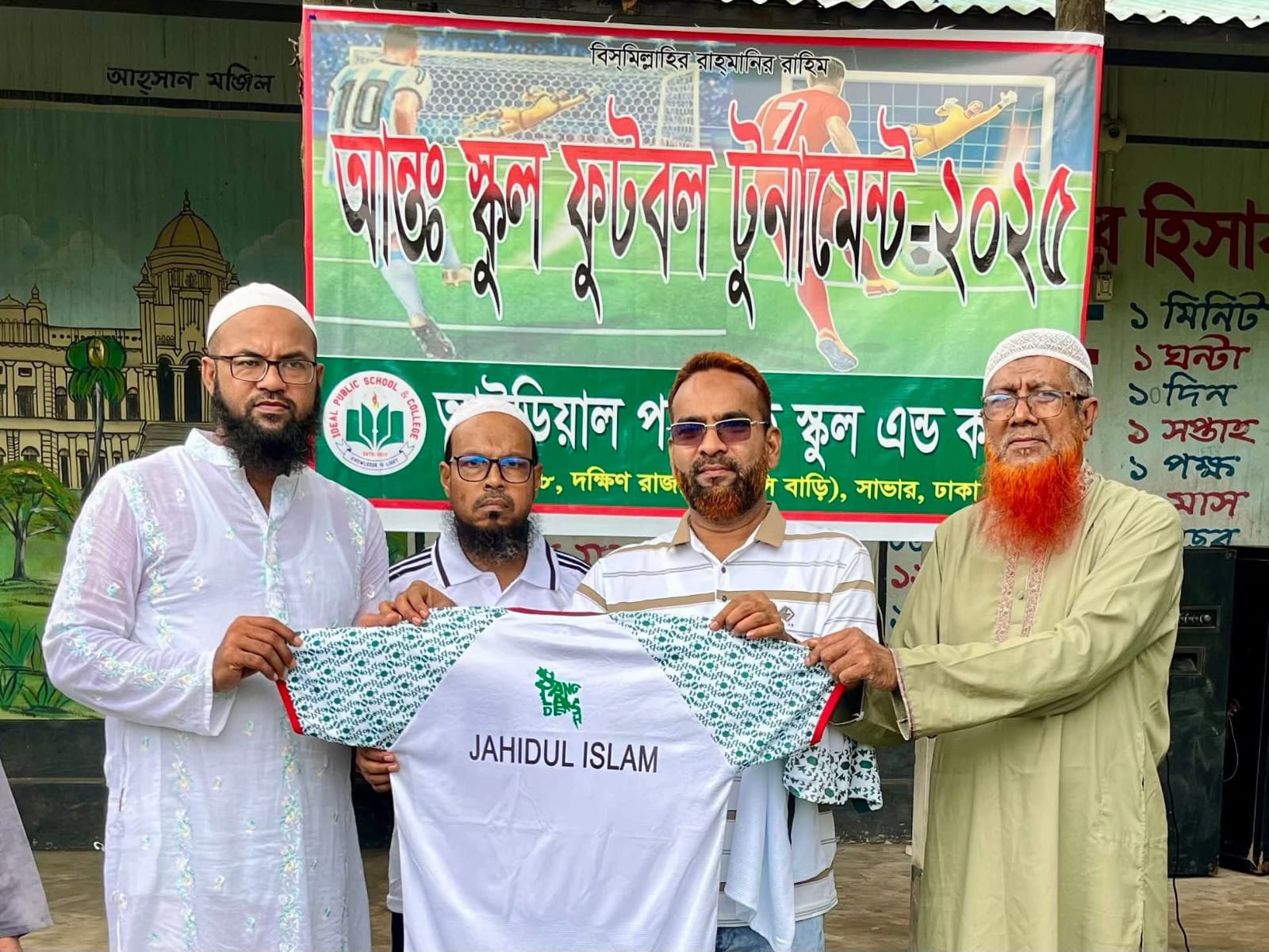 ৪/৮/২০২৫ ইং তারিক সোমবার বিকেলে আইডিয়াল পাবলিক স্কুল অ্যান্ড কলেজের তত্ত্বাবধানে আন্ত স্কুল ফুটবল টুর্নামেন্ট ২০২৫ উদ্বোধন ও জার্সি উন্মোচন অনুষ্ঠিত হয়।