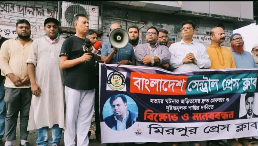 গাজীপুরে সাংবাদিক তুহিন হত্যা ও সাংবাদিক আনোয়ারের ওপর বর্বর হামলার প্রতিবাদে মিরপুরে বাংলাদেশ সেন্ট্রাল প্রেস ক্লাবের বিক্ষোভ ও মানববন্ধন কর্মসূচি অনুষ্ঠিত। ঢাকা, ৮ আগস্ট ২০২৫: গাজীপুরে দৈনিক প্রতিদিনের কাগজ পত্রিকার সাহসী সাংবাদিক আসাদুজ্জামান তুহিন কে নির্মমভাবে হত্যা এবং দৈনিক বাংলাদেশের আলো পত্রিকার গাজীপুর প্রতিনিধি সাংবাদিক আনোয়ার হোসেন-এর ওপর মধ্যযুগীয় কায়দায় বর্বরোচিত হামলার প্রতিবাদে রাজধানীর মিরপুরে বিক্ষোভ ও মানববন্ধন কর্মসূচি পালন করেছে বাংলাদেশ সেন্ট্রাল প্রেস ক্লাব (B.C.P.C)। শুক্রবার (৮ আগস্ট) বিকেলে বাংলাদেশ সেন্ট্রাল প্রেস ক্লাব (B.C.P.C)-এর প্রতিষ্ঠাতা সভাপতি ও জাতীয় দৈনিক মাতৃজগত পত্রিকা’র সম্পাদক খান সেলিম রহমান-এর নেতৃত্বে মিরপুর ১০ নম্বর গোলচত্বরে এই মানববন্ধন ও বিক্ষোভ কর্মসূচি অনুষ্ঠিত হয়। এই সময় বক্তারা সাংবাদিক আসাদুজ্জামান তুহিন কে জবাই করে হত্যা ও সাংবাদিক আনোয়ারকে মধ্যযুগীয় কায়দায় ইট দিয়ে থেঁতলে আহত করায় তীব্র ক্ষোভ ও নিন্দা প্রকাশ করেন এবং অপরাধীদের দ্রুত গ্রেফতার করে দৃষ্টান্তমূলক শাস্তির দাবি জানান। এ-সময় বাংলাদেশ সেন্ট্রাল প্রেস ক্লাব (B.C.P.C) প্রতিষ্ঠাতা সভাপতি খান সেলিম রহমান তাঁর বক্তব্যে বলেন— “সাংবাদিকদের ওপর একের পর এক হামলা ও হত্যাকাণ্ড প্রমাণ করে যে, দেশে গণমাধ্যমকর্মীরা আজ ভয়াবহ নিরাপত্তাহীনতায় ভুগছেন। গাজীপুরে সাংবাদিক আসাদুজ্জামান তুহিন-কে নৃশংসভাবে হত্যা এবং সাংবাদিক আনোয়ার হোসেন-এর উপর বর্বরোচিত হামলা শুধু ব্যক্তি নয়—এটি গোটা সাংবাদিক সমাজ, স্বাধীন সাংবাদিকতা ও মুক্ত মত প্রকাশের উপর সরাসরি আঘাত।” “একজন সাংবাদিক তার দায়িত্ববোধ থেকে সমাজের কিছু লোকের কুৎসিত চিত্র জনসম্মুখে তুলে ধরতে চেয়েছিলেন—আর সেই দায়েই তার জীবন দিতে হলো! আরেকজনকে চাঁদাবাজির সংবাদ প্রকাশের জের ধরে পুলিশের সামনে প্রকাশ্যে ইট দিয়ে থেঁতলে রক্তাক্ত করা হলো! এটা কোনো সভ্য রাষ্ট্রে মেনে নেওয়া যায় না।” “আমি জোরালোভাবে বলতে চাই—সাংবাদিক হত্যা ও হামলার ঘটনা কোনোভাবেই আইনের আওতার বাইরে থাকতে পারে না। এই হামলার সঙ্গে জড়িত প্রতিটি অপরাধীকে দ্রুত গ্রেফতার করে দৃষ্টান্তমূলক শাস্তির আওতায় আনতে হবে।” “বাংলাদেশ সেন্ট্রাল প্রেস ক্লাব (B.C.P.C) সবসময় সত্য ও ন্যায়ের পক্ষে, এবং সাংবাদিকদের অধিকার ও নিরাপত্তার প্রশ্নে আমরা কোনো আপস করবো না। “আমি সরকারের প্রতি আহ্বান জানাচ্ছি—এই ঘটনাগুলোকে গুরুত্ব দিয়ে তদন্তের নির্দেশ দিন, দোষীদের চিহ্নিত করে দ্রুত বিচারের মুখোমুখি করুন। সাংবাদিকদের রক্ত যেন আর না ঝরে, মায়ের কোল যেন আর শূন্য না হয়।” “আমরা চাই, সাংবাদিকদের নিরাপত্তা নিশ্চিত করতে একটি স্বতন্ত