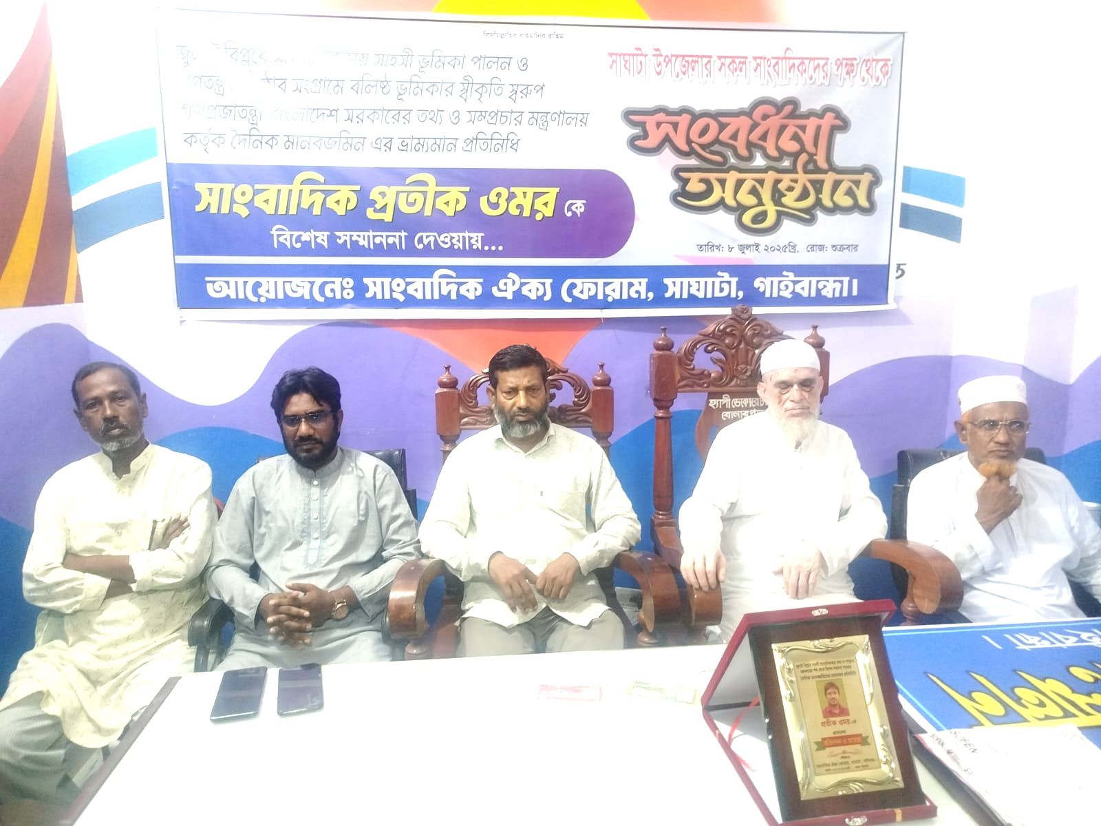 সম্মাণনা অনুষ্ঠানে সাংবাদিক আনিছুর রহমান টিপুর সভাপতিত্বে আমার দেশ পত্রিকার সাঘাটা প্রতিনিধি মিজানুর রহমান রাঙ্গার সঞ্চালনায় বক্তব্য রাখেন, সাঘাটা উপজেলা বিএনপির আহবায়ক আলহাজ মোহাম্মদ আলী, বাংলাদেশ জামায়েত ইসলামীর সাঘাটা উপজেলা সেক্রেটারী মো: আব্দুল গফুর মন্ডল, বোনারপাড়া সিনিয়র মাদ্রসার উপাধ্যক্ষ জাহিদুল ইসলাম, করতোয়া প্রতিনিধি জয়নুল আবেদীন, আজকের জনগণের স্টাফ রিপোর্টার আবু তাহের, দৈনিক ঘাঘট প্রতিনিধি আবু সাঈদ মন্ডল, যায়যায়দিন প্রতিনিধি আনোয়ার হোসেন রানা, বাংলা টিভির জেলা প্রতিনিধি জাহিদুল ইসলাম জাহিদ,দৈনিক বাংলাদেশ সমাচার পত্রিকার গাইবান্ধা জেলা প্রতিনিধি মোঃ আনছারুজ্জামান (রেজুয়ান),গোবিন্দগঞ্জ উপজেলা প্রতিনিধি জাফর ইকবাল রানা,ডেইলী সান এর রিপোর্টার হেদায়েতুল্লাহ সৌখিন,আমার সংবাদ ও জনবানী পত্রিকার সাঘাটা উপজেলা প্রতিনিধি ইয়ামিন হাসান,উপজেলা শ্রমিক কল্যাণ ফেডারেশনের সাধারণ সম্পাদক রাশেদুন নবী।