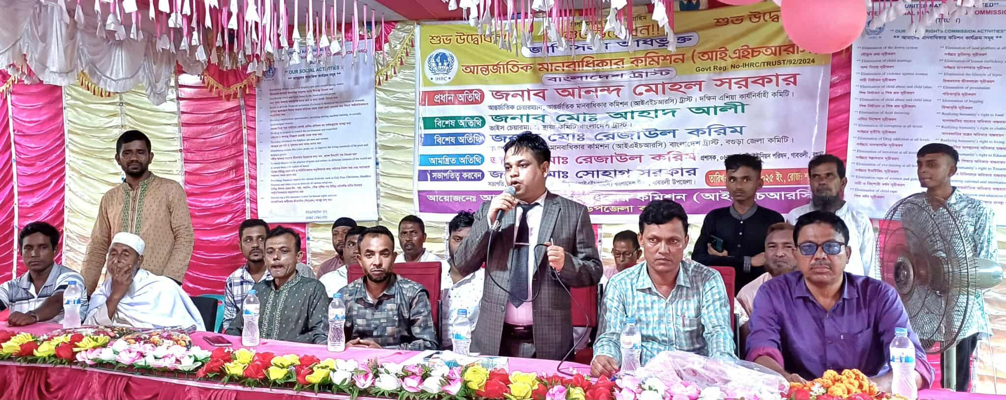 আহসান হাবিব শিবলু, বগুড়া: জাতিসংঘ অধিভুক্ত আন্তর্জাতিক মানবাধিকার কমিশন (আইএইচআরসি) বাংলাদেশ ট্রাস্ট বগুড়ার গাবতলী উপজেলা শাখার আনুষ্ঠানিক উদ্বোধন অনুষ্ঠিত হয়েছে। শনিবার (৯ আগস্ট) দুপুরে দুর্গাহাটা ভূমি অফিস মাঠে আয়োজিত উদ্বোধনী অনুষ্ঠানে প্রধান অতিথি হিসেবে উপস্থিত ছিলেন আন্তর্জাতিক মানবাধিকার কমিশন (আইএইচআরসি) দক্ষিণ এশিয়া কার্যনির্বাহী কমিটির চেয়ারম্যান আনন্দ মোহন সরকার। প্রধান অতিথির বক্তব্যে আনন্দ মোহন সরকার বলেন, “মানবাধিকার সুরক্ষা ও ন্যায়বিচার প্রতিষ্ঠা আমাদের সাংগঠনিক অঙ্গীকার। দেশের প্রত্যন্ত অঞ্চলে মানবাধিকার সচেতনতা ছড়িয়ে দিতে গাবতলী শাখার কার্যক্রম গুরুত্বপূর্ণ ভূমিকা রাখবে। আইএইচআরসি অন্যায়-অবিচারের বিরুদ্ধে সোচ্চার থাকবে এবং সবসময় মানুষের পাশে থাকবে।” সভাপতির বক্তব্যে মোঃ সোহাগ সরকার বলেন, “গাবতলী উপজেলায় আইএইচআরসি শাখা চালু হওয়ায় মানবাধিকার রক্ষার কার্যক্রম আরও গতিশীল হবে। সমাজের যে কোনো অবহেলিত ও বঞ্চিত মানুষের পাশে দাঁড়াতে আমরা সবসময় প্রস্তুত থাকব। সংগঠনের প্রতিটি সদস্য আন্তরিকতার সাথে দায়িত্ব পালন করবে।” অনুষ্ঠানে বিশেষ অতিথি ছিলেন আন্তর্জাতিক মানবাধিকার কমিশন (আইএইচআরসি) বাংলাদেশ ট্রাস্টের ভাইস চেয়ারম্যান ও স্থায়ী কমিটির সদস্য মোঃ আহাদ আলী, আমন্ত্রিত অতিথি বগুড়া জেলা কমিটির সভাপতি মোঃ রেজাউল করিম। এছাড়া বক্তব্য রাখেন দুর্গাহাটা ইউনিয়নের সাবেক চেয়ারম্যান আব্দুল হান্নান এবং প্রাক্তন শিক্ষক আব্দুল বারী। সঞ্চালনায় ছিলেন গাবতলী শাখার সাধারণ সম্পাদক শহিদুল ইসলাম। উদ্বোধনী অনুষ্ঠানে স্থানীয় জনপ্রতিনিধি, রাজনৈতিক ও সামাজিক নেতৃবৃন্দসহ বিভিন্ন পর্যায়ের গণ্যমান্য ব্যক্তিবর্গ উপস্থিত ছিলেন।