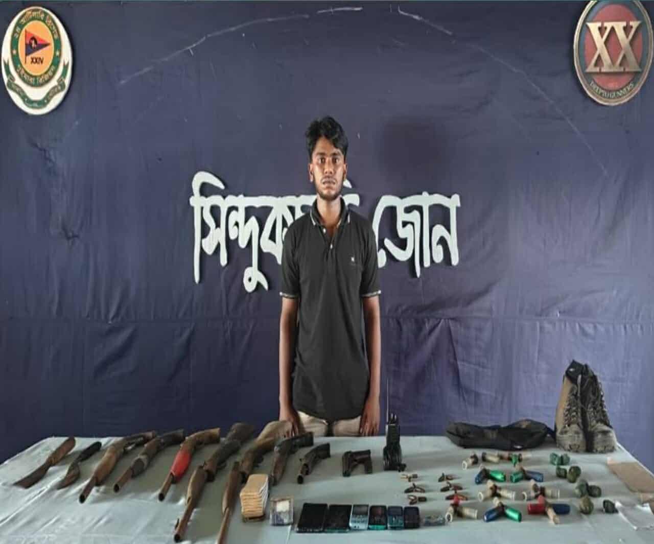 উদ্ধারকৃত অস্ত্র ও অন্যান্য সরঞ্জামাদি-বিদেশি তৈরি পিস্তল ( ভারত)একটি, পিস্তল ম্যাগাজিন একটি,পিস্তল এ্যামুনেশন আঠারোটি,দেশিও তৈরি শট ব্যারেল এলজি একটি,দেশিও তৈরি লং ব্যারেল এলজি চারটি,দেশিও তৈরি গাদা বন্দুক দুটি,কার্তুজ ছাব্বিশটি,রামদা দুটি,অ্যান্ড্রয়েড মোবাইল দুটি,বাটন মোবাইল চারটি,চাঁদা আদায় রশিদ বই দশটি,ওয়াকি টকি সেট চার্জার সহ একটি, দেশীয় বোমা দশটি,২০০০০ ( বিশ হাজার ) বাংলাদেশি দেশি টাকা।