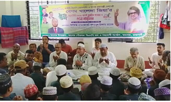 বিএনপির চেয়ারপার্সন সাবেক প্রধানমন্ত্রী আপোষ হীন নেত্রী বেগম খালেদা জিয়ার ৮০ তম জন্মবার্ষিকী উপলক্ষে রাজশাহীর তানোরে আলোচনা সভা ও দোয়া মাহফিল অনুষ্ঠিত হয়েছে।