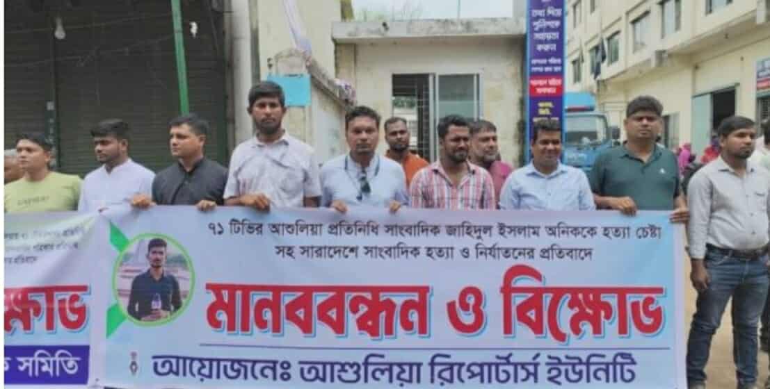 মোঃ রুবেল হোসেন (সাভার) ঢাকা : গাজীপুরে আসাদুজ্জামান তুহিন হত্যার ঘটনার রেষ কাটতে না কাটতেই সাভারে আশুলিয়ার ৭১ টিভির প্রতিনিধি জাহিদুল ইসলাম অনিককে উপর অতর্কিত হামলা করে হত্যাচেষ্টাসহ সারা দেশে সাংবাদিকদের ওপর হামলা ও নির্যাতনের নিন্দা জানিয়ে মানববন্ধন বিক্ষোভ কর্মসূচি পালন করেছে আশুলিয়া রিপোর্টার্স ইউনিটি।শনিবার(১৬ই আগস্ট)সকালে আশুলিয়া থানার প্রধান ফটকের সামনে আশুলিয়া রিপোর্টার্স ইউনিটির উদ্যোগে এই প্রতিবাদ সমাবেশ অনুষ্ঠিত হয়।এ সময় আশুলিয়া থানার অফিসার ইনচার্জ আব্দুল হান্নান মানববন্ধনে সংহতি প্রকাশ করে বলেন আশুলিয়া প্রতিনিধি ৭১ টিভির সাংবাদিক জাহিদুল ইসলাম অনিকের ওপর যারা হত্যার উদ্যেশ্যে হামলা চালিয়েছে,তারা সমাজের শত্রু জাতীর শত্রু।সাংবাদিকরা সত্য ও ন্যায়ের পক্ষে কাজ করেন,আর সেই সত্য প্রকাশ করলেই তাদের ওপর এমন বর্বর হামলা চালানো হয়।এটি অত্যন্ত দুঃখজনক ও নিন্দনীয়।আমরা দোষীদের আইনের আওতায় এনে দ্রুত বিচার করার দাবী জানান।মানববন্ধনে উপস্থিত বক্তারা আরও বলেন,সাংবাদিক অনিকের ওপর হামলাকারীদের দ্রুত গ্রেপ্তার করে আইনের আওতায় আনতে হবে।একই সঙ্গে সারা দেশে সাংবাদিকদের ওপর যে নির্যাতন চলছে,তা বন্ধে সরকারের পক্ষ থেকে কঠোর পদক্ষেপ নেওয়া দরকার।যদি অপরাধীদের দৃষ্টান্তমূলকশাস্তি দেওয়া না হয়,তাহলে সাংবাদিকরা স্বাধীনভাবে কাজ করতে পারবেন না। আশুলিয়া রিপোর্টার্স ইউনিটির সভাপতি এইচ এম সৌরভ বলেন,অনিকের ওপর হামলা কোনো বিচ্ছিন্ন ঘটনা নয়,এটি সাংবাদিক সমাজকে স্তব্ধ করে দেওয়ার একটি পরিকল্পিত চক্রান্ত।আমরা এর তীব্র নিন্দা জানাচ্ছি এবং হামলাকারীদের দ্রুতগ্রেপ্তারের দাবি জানাচ্ছি ।আশুলিয়া রিপোর্টার্স ইউনিটির সাধারণ সম্পাদকআসলাম হাওলাদার(সাকিব)বলেন,গণমাধ্যমকর্মীদের নিরাপত্তা নিশ্চিত করতে হবে।যারা সাংবাদিকদের ওপর হামলা চালায়,তাদের পেছনে কাদের মদদ রয়েছে,তা খতিয়ে দেখা দরকার। অপরাধীরা যত প্রভাবশালীই হোক না কেন,তাদের বিচারের মুখোমুখি করতে হবে।একর্মসূচি তে আশুলিয়া রিপোর্টার্স ইউনিটির সকল সদস্যসহ স্থানীয় বিভিন্ন গণমাধ্যমের সাংবাদিকরা অংশ নেন।তারাহুঁশিয়ারি দিয়ে বলেন,যদি দ্রুত হামলাকারীদের গ্রেপ্তার না করা হয়,তাহলে তারা আরও কঠোর কর্মসূচি ঘোষণা করবেন বলে জানান।