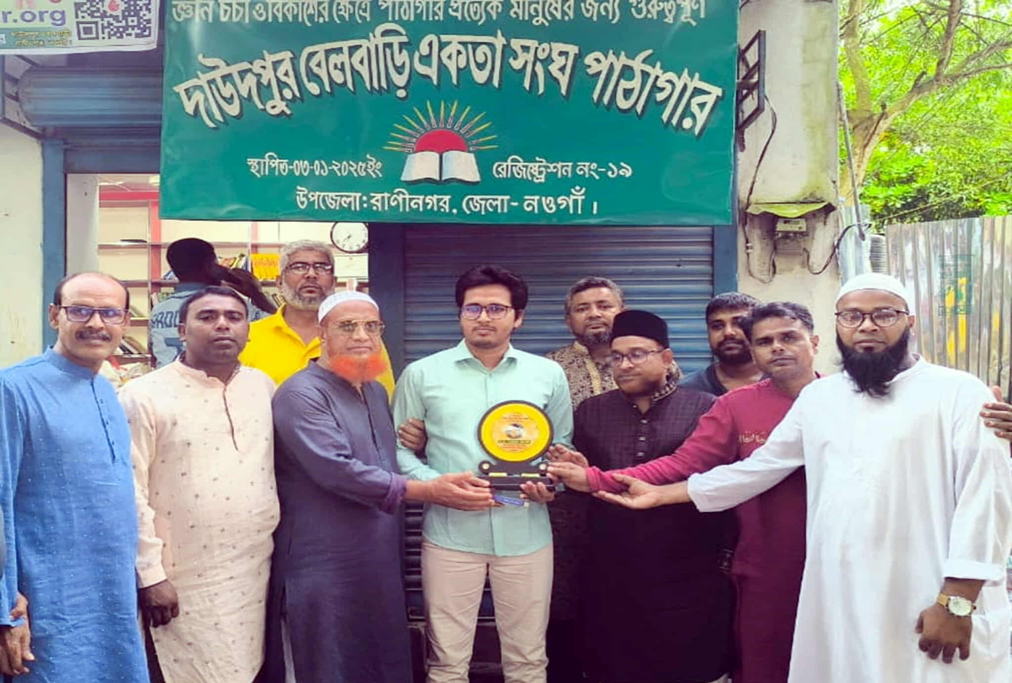 নওগাঁর রাণীনগর উপজেলার বেলবাড়ি গ্রামের কৃতি সন্তান তারিকুল ইসলাম তাজকে সংবর্ধনা দেওয়া হয়েছে। শনিবার বিকেলে উপজেলার দাউদপুর-বেলবাড়ি একতা সংঘ পাঠাগারের পক্ষ থেকে পাঠাগার প্রাঙ্গনে তাকে এই সংবর্ধনা দেওয়া হয়। এ সময় সংবর্ধনা সম্মাননা হিসেবে তাজের হাতে ক্রেস্ট তুলে দেওয়া হয়েছে।