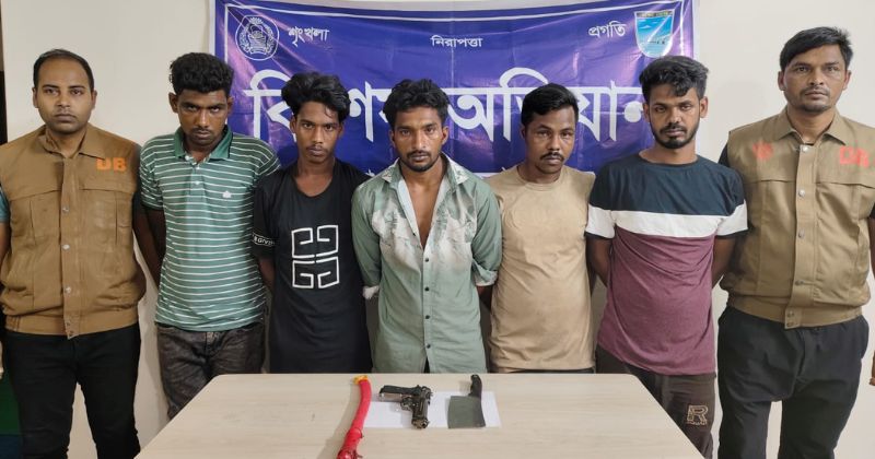 ফয়সাল : বৃহস্পতিবার (২৮ আগস্ট) সকালে এ তথ্য নিশ্চিত করেন ঢাকা জেলা উত্তর গোয়েন্দা (ডিবি) পুলিশের অফিসার ইনচার্জ মো. জালাল উদ্দিন। বুধবার রাত সাড়ে ১১টার দিকে সাভারের রেডিও কলোনি এলাকা থেকে তাদের গ্রেপ্তার করা হয়।গ্রেপ্তারকৃতরা হলো— নারায়ণগঞ্জ জেলার আড়াইহাজার থানার উজান গোপিন্দ পশ্চিমপাড়ার সামান মোল্লার ছেলে সোহাগ মোল্লা (২৭), ঢাকার ধামরাই থানার কুরংগী এলাকার ফজল মিয়ার ছেলে সুজন মিয়া (৩০), মানিকগঞ্জ সদর উপজেলার নারিকুল্লি আটিগ্রামের পরান বেপারীর ছেলে চাঁন মিয়া (২৭), একই এলাকার মৃত নূর হোসেনের ছেলে ইমরান হোসেন (২৫), এবং টাঙ্গাইলের নাগরপুর উপজেলার বলরামপুর গ্রামের উজ্জ্বল শেখের ছেলে হৃদয় (২৫)।ঢাকা জেলা উত্তর ডিবি পুলিশের ইনচার্জ মো. জালাল উদ্দিন জানান, গ্রেপ্তারকৃতরা দেশের বিভিন্ন স্থানে চুরি, ছিনতাই ও ডাকাতির সঙ্গে জড়িত থাকার কথা স্বীকার করেছে। তাদের মধ্যে সোহাগ মোল্লা ও সুজন মিয়ার বিরুদ্ধে বিভিন্ন থানায় একাধিক মামলা রয়েছে। গ্রেপ্তার আসামিদের বিরুদ্ধে আইনগত ব্যবস্থা প্রক্রিয়াধীন রয়েছে।