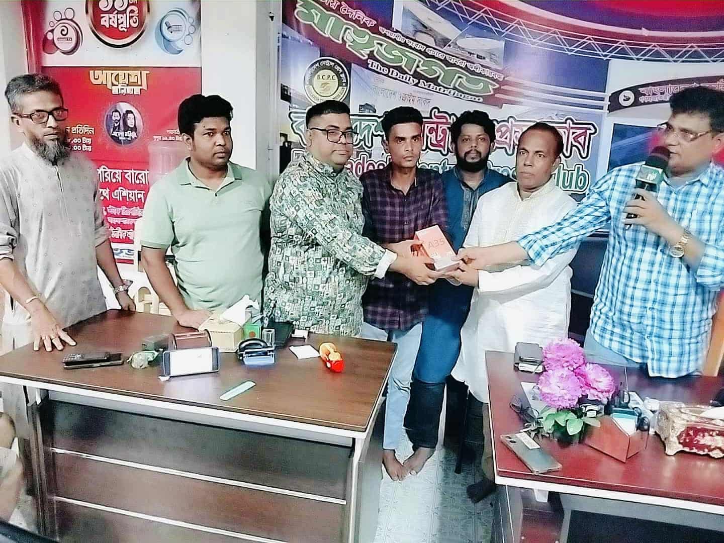 নিজস্ব প্রতিবেদক: রাজধানী ঢাকার মিরপুরে ১০ নম্বর বাংলাদেশ সেন্ট্রাল প্রেস ক্লাব (B.C.P.C) কার্যালয়ে গত ২৯ আগস্ট শুক্রবার অনুষ্ঠিত জরুরি আলোচনা সভা শেষে ঝিনাইদহের নবীন শিল্পী শামীমের হাতে ১ টি নতুন মোবাইল ফোন উপহার হিসেবে তুলে দেওয়া হয়েছে। জাতীয় দৈনিক মাতৃজগত পত্রিকার ঝিনাইদহ জেলা প্রতিনিধি শারমিন আরার অনুরোধে এই উদ্যোগ গ্রহণ করেন বাংলাদেশ সেন্ট্রাল প্রেস ক্লাব (B.C.P.C)-এর প্রতিষ্ঠাতা সভাপতি ও জাতীয় দৈনিক মাতৃজগত পত্রিকা’র সম্পাদক মানবতার ফেরিওয়ালা খান সেলিম রহমান, যিনি মানবাধিকার, সামাজিক উন্নয়ন এবং তরুণ প্রতিভাদের পাশে দাঁড়ানোর জন্য পরিচিত মুখ। শামীম দীর্ঘদিন ধরে সংগীত ও কন্টেন্ট ক্রিয়েশন নিয়ে কাজ করছেন। ছোটবেলা থেকেই তিনি গান পরিবেশন করতেন এবং ধীরে ধীরে জনপ্রিয়তা অর্জন করেন। কিন্তু আর্থিক সীমাবদ্ধতার কারণে তার কাছে মোবাইল ছিল না, যা নতুন গান রেকর্ড করা ও ভিডিও তৈরি করতে বাধা সৃষ্টি করত। শামীম বলেন, “আজকের উপহার আমার জন্য নতুন দিগন্ত খুলে দিয়েছে। আমি এ সুযোগ কাজে লাগিয়ে আরও ভালো কিছু করতে চাই।” খান সেলিম রহমান দীর্ঘদিন ধরে মানবাধিকার, অসহায় শিল্পী ও তরুণ প্রতিভাদের সহায়তায় সক্রিয়। তিনি মনে করেন, প্রতিটি প্রতিভা দেশের সম্পদ, এবং তা বিকশিত করতে সহায়তা করা সমাজের কর্তব্য। উপস্থিত সদস্যরা বলেন, “খান সেলিম রহমান শুধু সংগঠক নন, তিনি মানবতার সত্যিকারের ফেরিওয়ালা। ছোট সহায়তাও বড় পরিবর্তন আনতে পারে।” মোবাইল উপহার দেওয়ার অনুষ্ঠানে শামীমের সৃজনশীল কার্যক্রম, সীমাবদ্ধতা ও সম্ভাবনা নিয়ে আলোচনা করা হয়। এ সময় আরো উপস্থিত ছিলেন ঢাকা প্রেসক্লাবের সাধারণ সম্পাদক মোঃ দেলোয়ার হোসেন, বাংলাদেশ সেন্ট্রাল প্রেস ক্লাব (B.C.P.C)–এর সহ-সভাপতি ও দৈনিক জনজাগরণ পত্রিকার সম্পাদক ও প্রকাশক মোঃ শিহাব উদ্দিন, শিক্ষা বিষয়ক সম্পাদক ও জাতীয় দৈনিক মাতৃজগত পত্রিকা’র সহ-বার্তা সম্পাদক ওয়ারেছ আহমেদ তাপস, যুগ্ন সাধারণ সম্পাদক সুমন খান, যুগ্ম সাধারণ সম্পাদক জাহাঙ্গীর আলম, ধর্ম বিষয়ক সম্পাদক মোঃ শফিকুর রহমান, ক্রীড়া বিষয়ক সম্পাদক সেলিম আহমেদ তপু সহ বিভিন্ন প্রিন্ট ও ইলেকট্রনিক মিডিয়ার সাংবাদিক, সাংস্কৃতিক ব্যক্তিত্ব, সংগঠক, প্রেস ক্লাবের সদস্য ও শুভাকাঙ্ক্ষীরা। মানবতার ফেরিওয়ালা খান সেলিম রহমান শুধুমাত্র শিল্পীদের পাশে দাঁড়ান না; তিনি সামাজিক কর্মকাণ্ড ও দারিদ্র্য নিরসনেও সক্রিয় ভূমিকা পালন করে আসছেন। কোনো সাংবাদিক হামলা মামলার সময় নির্যাতনের শিকার হলে তিনি নিজ অর্থায়নে পাশে দাঁড়ান। ২০২০ সালে করোনাকালে বগুড়ায় ১০ লক্ষ টাকার খাদ্য ও ঈদ সামগ্রী বিতরণ করেছেন। ২০২৪ সালের বন্যায় কুমিল্লা ও ফেনীর ক্ষতিগ্রস্ত মানুষের পাশে নিজ অর