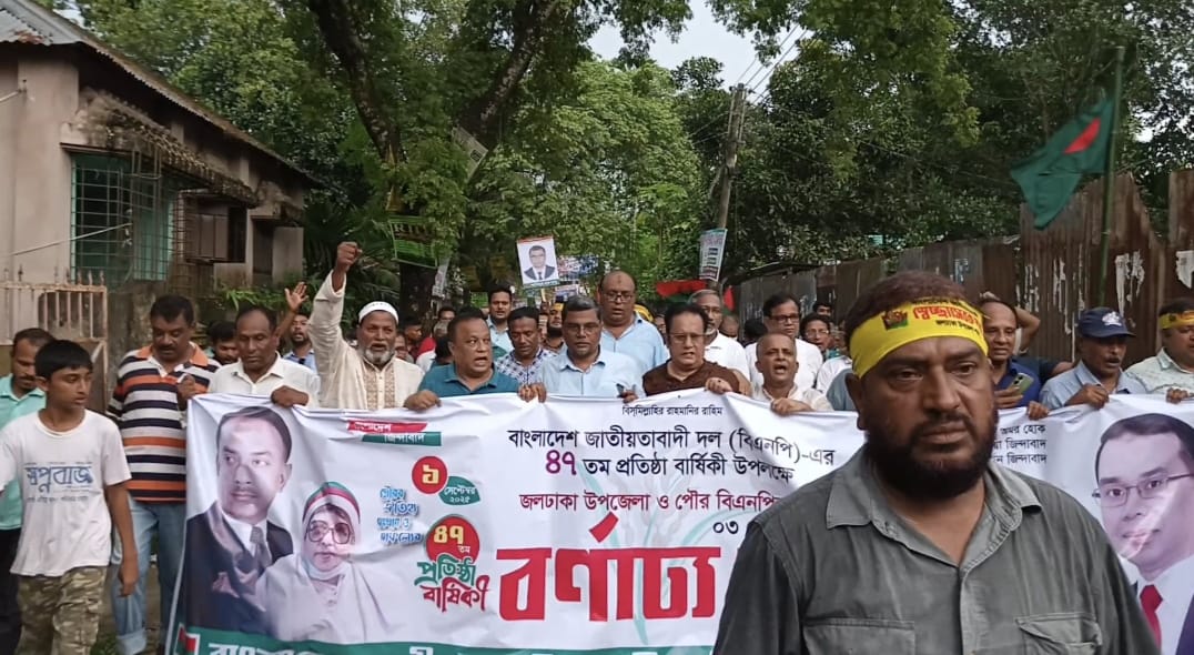 মোঃ আল আমিন ইসলাম, নীলফামারী প্রতিনিধি: ১ সেপ্টেম্বর বাংলাদেশ জাতীয়তাবাদী দল বিএনপি’র (৪৭তম) প্রতিষ্ঠাবার্ষিকী উপলক্ষে বর্ণাঢ্য র্যালি ও আলোচনা সভা অনুষ্ঠিত হয়েছে। এসময় জলঢাকা উপজেলা বিএনপির সাধারণ ময়নুল ইসলামের নেতৃত্বে জলঢাকা তেল পাম্প থেকে একটি র্যালি বাইর হয়ে ডালিয়া রোড দিয়ে, বাসস্ট্যান্ড হয়ে, ডিমলা রোড দিয়ে, জলঢাকা সরকারি ডিগ্রী কলেজ মাঠে একত্রিত হোন সবাই সেখানে বিভিন্ন অঙ্গ সংগঠনের নেতৃবৃন্দরা উপস্থিত ছিলেন। অনুষ্ঠানে প্রধান অতিথি হিসেবে উপস্থিত ছিলেন জেলা বিএনপির আহ্বায়ক মীর সেলিম ফারুক, প্রধান বক্তা হিসেবে উপস্থিত ছিলেন জনাব সাইফুল্লাহ (রুবেল) এবং আমন্ত্রিত অতিথি হিসেবে উপস্থিত ছিলেন জেলা বিএনপির সদস্য ও জলঢাকা উপজেলা বিএনপির সাধারণ সম্পাদক ময়নুল ইসলাম ,আলহাজ্ব সৈয়দ আলী জেলা বিএনপির সদস্য, এছাড়া উপস্থিত ছিলেন জলঢাকা উপজেলা বিএনপি’র সাবেক সভাপতি ফাহমিদ ফয়সাল কমেট চৌধুরী, জেলা বিএনপির সদস্য এবং পৌর বিএনপির সভাপতি রশিদুল ইসলাম বাঙালী ও উপজেলা যুবদলের সভাপতি হারুন জোয়ার্দার, সদস্য সচিব শাহিনুল হক বাবু, উপজেলা স্বেচ্ছাসেবক দলের সভাপতি শাহজাহান কবির লেলিন, পৌর বিএনপির সাধারণ সম্পাদক সারোয়ার হোসেন ভুট্টু, পৌর বিএনপির সাংগঠনিক সম্পাদক এটিএম আউয়াল (বিএসসি) পৌর যুবদল নেতা শফিকুর রহমান,সহ বিভিন্ন অঙ্গ সংগঠনের সভাপতি সাধারণ সম্পাদকরা। বক্তারা বলেন জলঢাকা উপজেলা বিএনপির কে ঐক্য গরে তুলতে হবে, কোন ভেদাভেদ চলবেনা সবাইকে এক হয়ে কাজ করতে হবে এটা আমাদের দলের নেতা জনাব দেশ নায়ক তারেক রহমানের নির্দেশ। আজকে যে বাংলাদেশ জাতীয়তাবাদী দল বিএনপির গণজোয়ার উঠেছে জলঢাকা উপজেলায় তা থামানো যাবে না, এভাবেই যেন ঐক্য হয়ে সামনের দিকে কাজ করতে পারে সবাই সবার প্রতি এই আহ্বান জেলা বিএনপির। সবাই মিলে মিশে এক হয়ে কাজ করবেন,বললেন সাইফুল্লা রুবেল সদস্য সচিব জেলা বিএনপি। পরে বক্তব্য শেষে আবারো সরকারি কলেজ মাঠ থেকে একত্রিত র্যালীটি জলঢাকার প্রধান প্রধান সড়ক গুলো প্রদক্ষিণ করে ডিমলা রোড এসে শেষ করে দেন বিএনপি’র ৪৭ তম প্রতিষ্ঠা বার্ষিকীর অনুষ্ঠানটি।
