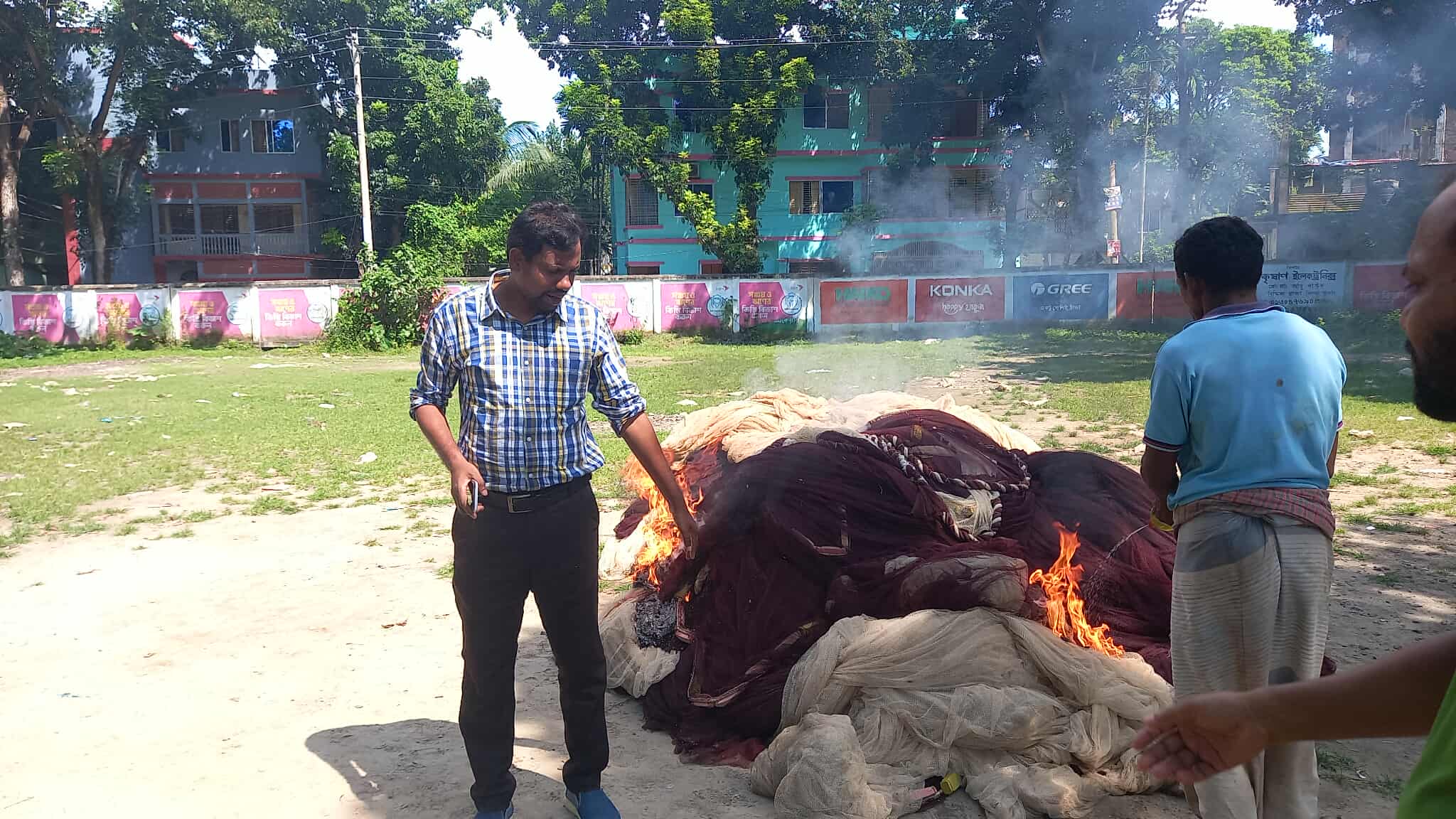 জব্দ কৃত জাল সিংড়া কোর্ট মাঠে দিবালোকে পুড়িয়ে ধ্বংস করা হয়েছে।
