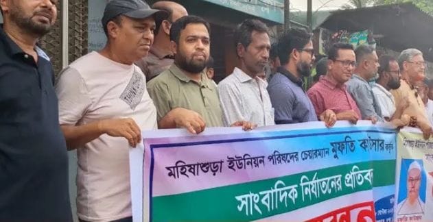 মোঃ কামাল হোসেন প্রধান ,জেলা প্রতিনিধি নরসিংদীঃ নরসিংদী সদর উপজেলার মহিষাশুরা ইউনিয়ন পরিষদের চেয়ারম্যান মুফতি কাউছার আহমেদ ভূঁইয়ার বিরুদ্ধে নানা অনিয়ম ও দুর্নীতির বিষয়ে সরেজমিনে তথ্য সংগ্রহ করতে গিয়ে তিন সাংবাদিক মারধর ও হেনস্তার শিকার হয়েছেন চেয়ারম্যান ও তার অনুসারীদের কর্তৃক। এ ঘটনায় অদ্য ৯ সেপ্টেম্বর ২৫ ইং মঙ্গলবার দুপুরে মাধবদীতে মানববন্ধন কর্মসূচি পালন করেছেন মাধবদী প্রেসক্লাব ও নরসিংদীর রিপোর্টার্স ক্লাব সহ অন্যান্য সাংবাদিকরা। এতে অংশগ্রহণকারী সাংবাদিক নেতারা এ ঘটনায় তীব্র ক্ষোভ প্রকাশ করেন এবং দ্রুত সুষ্ঠু তদন্তের মাধ্যমে চেয়ারম্যান মুফতি কাউছারকে চেয়ারম্যান পদ থেকে অব্যাহতি প্রদান ও গ্রেফতার করে বিচারের আওতায় আনার জন্য জোর দাবি জানান। মানববন্ধন শেষে সাংবাদিকরা মৌন মিছিল নিয়ে মাধবদী পৌরসভায় অবস্থান কর্মসূচি পালন করেন এবং নরসিংদী সদর উপজেলা নির্বাহী অফিসার (ইউএনও) আসমা জাহান সরকারের বরাবর লিখিত স্মারকলিপি প্রদান করেন। এ সময় তারা ঘটনাটি ইউএনও কে অবহিত করে প্রয়োজনীয় আইনগত পদক্ষেপ গ্রহণের জোর দাবি জানান। এ ঘটনায় মাধবদী থানায় একটি লিখিত অভিযোগ দায়ের করা হয়েছে। সাংবাদিকরা অভিযোগ করেন,মহিষাশুরা ইউনিয়ন পরিষদের চেয়ারম্যান মুফতি কাউছার আহমেদ ভূঁইয়ার নেতৃত্বে সাংবাদিকদের মারধর করে তাদের বহনকারী মোটরসাইকেল ভাঙচুর করা হয় এবং মোবাইল, ক্যামেরা, মাইক্রোফোন, আইডি কার্ড ও নগদ টাকা ছিনিয়ে নেওয়া হয়। একই সময়ে ঘটনাটিকে ভিন্ন খাতে প্রবাহিত করতে চেয়ারম্যান ও তার অনুসারীরা সাংবাদিকদের আটকে রেখে অস্ত্রের মুখে জিম্মি করে সাদা কাগজে জোরপূর্বক স্বাক্ষর নেন। ভুক্তভোগী সংবাদকর্মীরা আরও জানান, মহিষাশুরা ইউপি চেয়ারম্যান মুফতি কাউছার আহমেদ ভূঁইয়ার বিরুদ্ধে ইউনিয়ন পরিষদে সেবা নিতে আসা লোকজনের কাছ থেকে অতিরিক্ত ফি নেওয়া,বিভিন্ন সময় চাল চুরি, বল প্রয়োগের মাধ্যমে জমি দখল, মানুষকে জিম্মি করা সহ নানা অপরাধের অভিযোগ দীর্ঘদিন ধরে উঠেছে। এর প্রেক্ষিতে ৮ সেপ্টেম্বর ২৫ ইং সোমবার বিকালে এসব বিষয়ে তথ্য সংগ্রহ করতে সরেজমিনে ইউনিয়ন পরিষদে যান আনন্দ টিভির নরসিংদী জেলা প্রতিনিধি ও নরসিংদী জেলা রিপোর্টার্স ক্লাবের সাধারণ সম্পাদক মোঃ মনিরুজ্জামান, দৈনিক যুগান্তর পত্রিকার মাধবদী প্রতিনিধি মোঃ জাকারিয়া এবং নিউজ টোয়েন্টি ওয়ান বাংলা টিভির স্টাফ রিপোর্টার মোঃ শাহিন মিয়া। এ তিন সাংবাদিকদের উপর এই বর্বরোচিত হামলা চালায় ইউপি চেয়ারম্যান ও তার সাঙ্গপাঙ্গরা। অভিযুক্ত ইউপি চেয়ারম্যান মুফতি কাউছার আহমেদ ভূঁইয়া অভিযোগ অস্বীকার করে বলেন,আমার সাথে কোনো ঘটনা ঘটেনি। এ বিষয়ে আমি সম্পৃক্ত নই। আমি কোনো দুর্