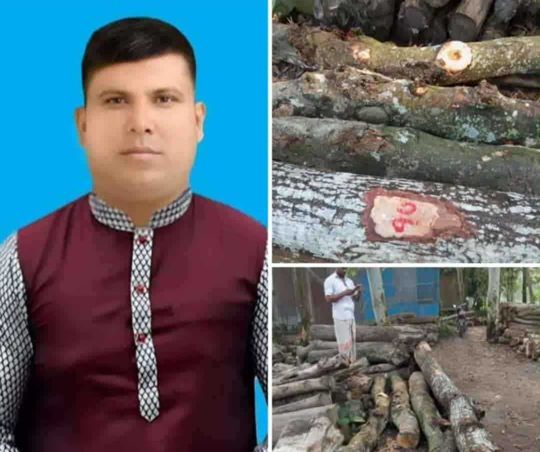 লালমনিরহাট জেলার কালীগঞ্জ উপজেলার জাগরণী চন্দ্রপুর ফেডারেশনের সভাপতি ও ইউনিয়ন যুবদলের সাধারণ সম্পাদক শাহীনুর ইসলাম শাহীনের বিরুদ্ধে সরকারি রাস্তার গাছ কর্তণ ও বিক্রি করার অভিযোগ করেছেন এলাকাবাসী। মঙ্গলবার ৯ ই সেপ্টেম্বর ২০২৫ বিকেল ৫ টার সময় তিনটি কাঠাল গাছ ও একটি মেহেগুনী গাছের গোলাই এলাকাবাসী আটক করে চন্দ্রপুর ইউনিয়ন পরিষদে জমা দেন। এ নিয়ে এলাকায় চাঞ্চল্যের সৃষ্টি হয়েছে। ঘটনার সুষ্ঠু তদন্তের মাধ্যমে জড়িতদের বিরুদ্ধে শাস্তিমূলক ব্যবস্থা গ্রহণের দাবি জানিয়েছেন এলাকাবাসী। এলাকাবাসীর অভিযোগ, কালীগঞ্জ উপজেলার চন্দ্রপুর ইউনিয়নের উত্তর বালাপাড়া গুচ্ছগ্রাম আবাসন প্রকল্প সংলগ্ন এলাকার সরকারি রাস্তার একটি কাঁঠাল গাছ ও ৩টি মেহগনি গাছ কেটে বিক্রির সময় তা আটকিয়ে দেন তারা। পরে গাছের গোলাইগুলো চন্দ্রপুর ইউনিয়ন পরিষদে জমা রাখা হয়েছে। গাছগুলো জেলা পরিষদ যথাযথ প্রক্রিয়ায় নিলামের মাধ্যমে কর্তণের জন্য নির্দেশ দিয়েছে কিনা, এ বিষয়ে কোনো কাগজপত্র দেখাতে পারেনি অভিযুক্তরা। এ বিষয়ে জাগরণ চন্দ্রপুর ফেডারেশনের সভাপতি ও ইউনিয়ন যুবদলের সাধারণ সম্পাদক শাহীনুর ইসলাম শাহীন বলেন, রাস্তার গাছটি যখন হাসান আলীর দোকানের উপরে হেলে থাকে, তখন দুর্ঘটনা ঘটতে পারে এই আশঙ্কায় থাকায় সে গাছটি কাটার আবেদন করে। আবেদনটি আমার কাছে রক্ষিত আছে। সেই ব্যক্তি গাছটি কাটার পরে আমাকে মোবাইল ফোনে জানালে আমি তাকে তা ফেডারেশনে পাঠিয়ে দিতে বলি, এর মধ্যে চাপারহাট বটতলা থেকে কয়েকজন লোকসহ একজন চৌকিদার এসে বলে চেয়ারম্যান পাঠাইছে, আমার সাথে কথা কাটাকাটি ও জুলুমসহ খারাপ ব্যবহার করে, অনেক চেষ্টার পরেও তা ফেডারেশনে নিতে পারিনি। পরে তারা ইউনিয়ন পরিষদের ভ্যান দিয়ে পরিষদ মাঠে নিয়ে রেখেছেন। সেই হাসান আলীর বক্তব্য নেওয়ার সময় বলে কাঠাল গাছের সাথে একটি মেহেগুনি গাছ ও ফেডারেশন এর চেয়ারম্যান নিয়ে যায়।