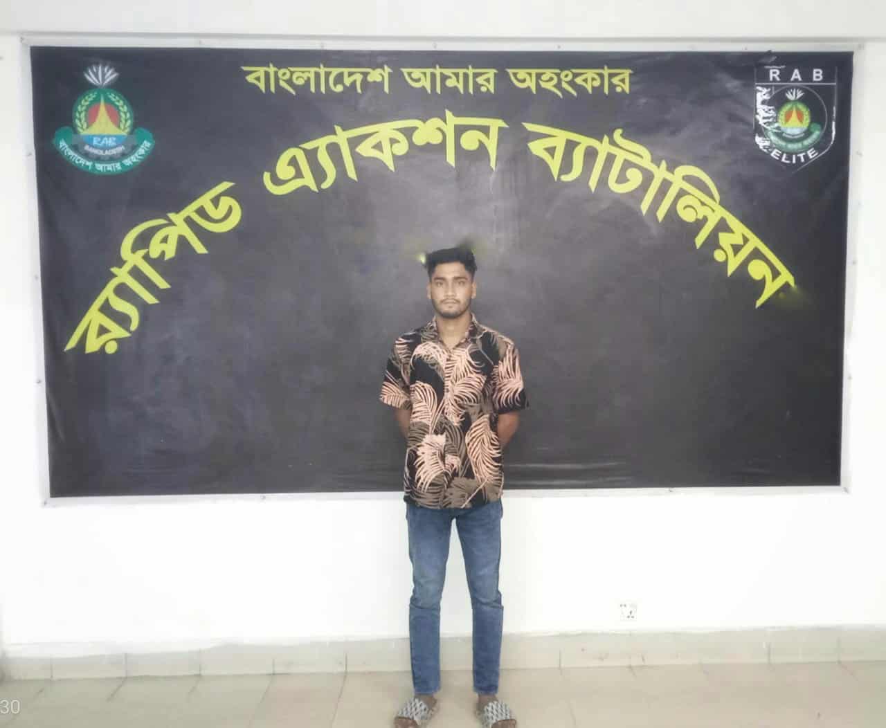 র্যাব-৮, সিপিসি-১, পটুয়াখালী ক্যাম্প ও র্যাব-১, সিপিসি-২, ঢাকা এর যৌথ আভিযানিক দল গোপন সংবাদের ভিত্তিতে ১০/০৯/২০২৫ইং তারিখ সময় আনুমানিক ২৩:৪৫ ঘটিকার সময় ঢাকা মহানগর ডিএমপি, দক্ষিণখান থানাধীন রাইসা হেয়ার ড্রেসার, মুক্তিযোদ্ধা সুপার মার্কেট, দেওয়ানপাড়া মডেল স্কুল রোড এলাকা হতে অভিযান পরিচালনা করে বরগুনা জেলার আলোচিত শীর্ষ সন্ত্র্রাসী মোঃ কালু ওরফে ইব্রাহীম কালু ওরফে বস্তি কালু, পিতা- সোনা মল্লিক সাং ডেমা চামেলী বাজার, ০১নং বদরখালী ইউপি, থানা ও জেলা বরগুনা’কে গ্রেফতার করতে সক্ষম হয়। উল্লেখ্য যে আসামী কালু ইব্রাহিম গত ০৩/০৯/২৫ তারিখ দেশীয় অস্ত্র নিয়ে প্রকাশ্যে এক কিশোরকে কুপিয়ে যখম করার দৃশ্য সামাজিক যোগাযোগ মাধ্যমে ভাইরাল হয়। উক্ত ঘটনাটি র্যাব-৮,বরিশাল এর দৃষ্টিগোচর হয় এবং তাকে গ্রেফতার করার জন্য দ্রুত পদক্ষেপ গ্রহণ করে। এছাড়াও আসামী কালু ওরফে বস্তি কালু বিভিন্ন সন্ত্রাসী কার্যক্রম ও মাদক ব্যাবসা, চুরি, ছিনতাই এবং নারী ঘটিত অপরাধ কার্যক্রম সহ নানা অপরাধ কর্মকান্ডের সাথে সম্পৃক্ততার অভিযোগ রয়েছে।