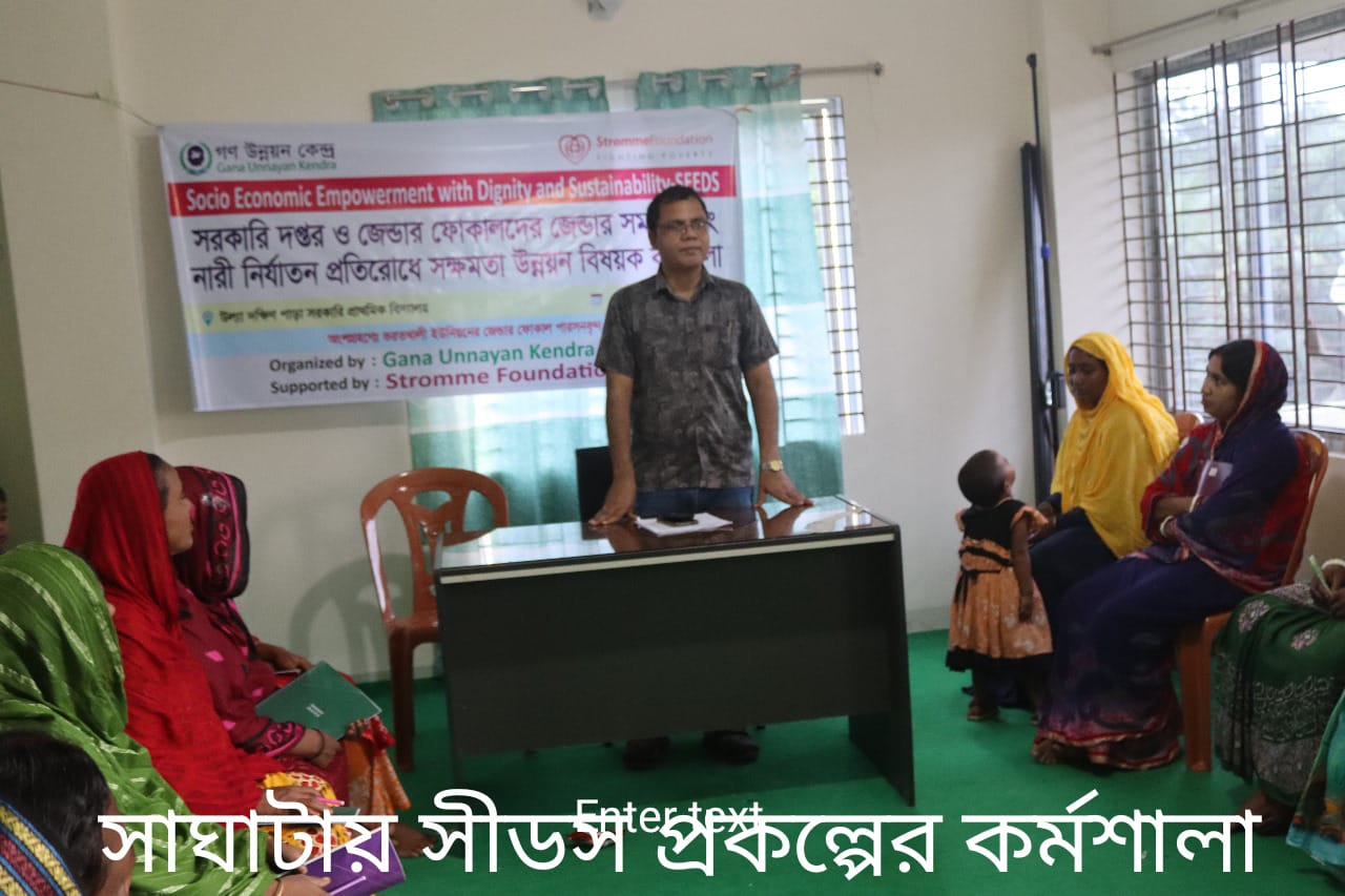 স্ট্রমী ফাউন্ডেশনের সহায়তায় জিইউকে পরিচালিত সীডস প্রকল্প সাঘাটা, ফুলছড়ি ও গোবিন্দগঞ্জ উপজেলায় ২ হাজার ৫০০ পরিবারের জীবনমান উন্নয়নে কাজ করছে।উক্ত কর্মশালায় উপস্থিত ছিলেন প্রোগ্রাম অফিসার কৃষিবিদ মাহমুদুল হাসান ও উপজেলা কো-অর্ডিনেটর লাইজু বেগম।