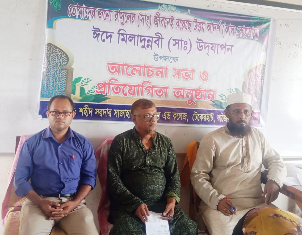 মোঃ আলী শেখ, স্টাফ রিপোর্টার: ১৮ সেপ্টেম্বর ২০২৫, ১৪৪৭ হিজরি ২৬ শে রবিউল আউয়াল, দক্ষিণ বঙ্গের প্রবেশদ্বার খ্যাত মাদারীপুর জেলার টেকেরহাটে শহীদ সরদার সাজাহান গার্লস স্কুল এন্ড কলেজ কর্তৃক আয়োজিত হলো মহা- পবিত্র ঈদ-ই মিলাদুন্নবী (সাঃ)। ঈদ – ই মিলাদুন্নবী (সাঃ) উদযাপন উপলক্ষে আলোচনা সভা ও মিলাদ মাহফিল ও প্রতিযোগিতার আয়োজন করা হয়।অনুষ্ঠানে সভাপতির আসন অলংকৃত করেন অধ্যক্ষ (ভারপ্রাপ্ত) হাসিবুল হাসান হাওলাদার। অনুষ্ঠানটি পরিচালনা করেন প্রভাষক ফাইজুর রহমান মামুন ( ইসমিক স্টাডিজ) উপস্থিত ছিলেন প্রভাষক খায়রুন্নেসা আফরোজা,প্রভাষক সালমা ইয়াসমিন সহ সহকারী শিক্ষক মাহমুদা খানম (ইসলাম শিক্ষা) সহকারী শিক্ষক বাতেনুজ্জামান জুয়েল। এছাড়া বিদ্যালয়ের শিক্ষক শিক্ষিকা ও কোমলমতি শিক্ষার্থী এবং প্রিন্ট ও ইলেক্ট্রিক মিডিয়ার সাংবাদিকবৃন্দ। অনুষ্ঠানে বক্তারা মহানবীর জীবনাদর্শ নিয়ে আলোচনা করেন। বক্তারা বলেন মহানবীর জীবনী শুধু আলোচলাই নয় আমাদের জীবনে এর প্রয়োগ ঘটাতে হবে। তাহলেই সমাজ,রাস্ট্র সঠিক পথের দিশা পাবে।পরে প্রতিষ্ঠানের কোমলমতী শিক্ষার্থীদের মধ্যে কোরআন তেলাওয়াত,হামদ-নাত,ইসলামিক কবিতা আবৃত্তি প্রতিযোগিতা ও মিলাদ মাহফিলের মাধ্যমে অনুষ্ঠানের সমাপ্তি ঘটে।