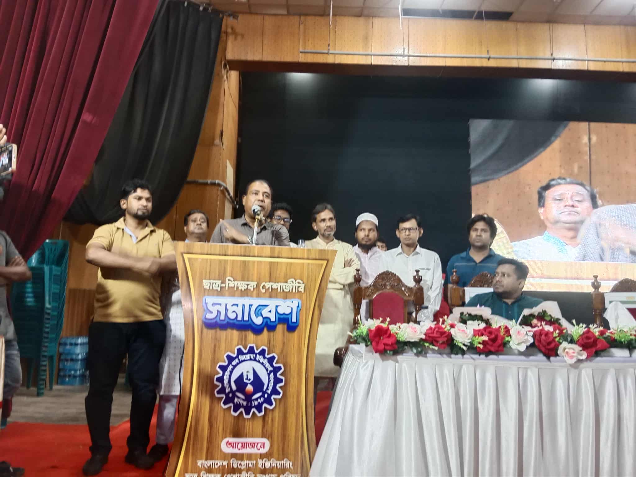 অদ্য বিকেল ৩.০০ ঘটিকায় টিটু মিলনায়তনে বাংলাদেশ ডিপ্লোমা ইঞ্জিনিয়ারিং ছাত্র শিক্ষক পেশাজীবী সংগ্রাম পরিষদ বগুড়া জেলা শাখা আয়োজিত ছাত্র শিক্ষক পেশাজীবী সমাবেশে বগুড়া জেলা বিএনপি’র সভাপতি ও বগুড়া পৌরসভার সাবেক মেয়র মোঃ রেজাউল করিম বাদশা প্রধান অতিথির বক্তব্যে বলেন, শহীদ রাষ্ট্রপতি জিয়াউর রহমান ১৯৭৮ সালে ডিপ্লোমা প্রকৌশলীদের উপ-সহকারী প্রকৌশলী পদবী উপহার দিয়েছেন, তাদের ৩৩% পদোন্নতির ব্যবস্থা করেছেন। আপোষহীন দেশনেত্রী বেগম খালেদা জিয়া ১৯৯৪ সালে ডিপ্লোমা প্রকৌশলীদের ১০ গ্রেড প্রদান সহ দ্বিতীয় শ্রেণির গেজেটেড কর্মকর্তার পদমর্যাদা দিয়েছেন। অর্থাৎ ডিপ্লোমা প্রকৌশলীদের জীবন-মান উন্নয়নে বিএনপি সবসময়ই ডিপ্লোমা প্রকৌশলীদের পাশে ছিলো। ডিপ্লোমা প্রকৌশলীদের আজকে যে সামাজিক মর্যাদা, অর্থনৈতিক উন্নয়ন এগুলো সবই বিএনপির অবদান উল্লেখ করে রেজাউল করিম বাদশা আরও বলেন, আগামী নির্বাচনে জনাব তারেক রহমানের নেতৃত্বে বিএনপি সরকার গঠন করলে ডিপ্লোমা প্রকৌশলীদের ন্যয়সঙ্গত সকল দাবী বিবেচনা করা হবে ইনশাআল্লাহ। সংগ্রাম পরিষদ বগুড়া জেলা শাখার আহ্বায়ক প্রকৌশলী মোঃ নাফিউল ইসলামের সভাপতিত্বে অনুষ্ঠিত সমাবেশে প্রধান বক্তা হিসেবে বক্তব্য রাখেন, আইডিইবি কেন্দ্রীয় নির্বাহী কমিটির সংগ্রামী আহবায়ক প্রকৌশলী মোঃ কবীর হোসেন। বিশেষ অতিথি হিসেবে উপস্থিত ছিলেন, বগুড়া জেলা বিএনপি’র ভারপ্রাপ্ত সাধারণ সম্পাদক ও সাবেক এমপি আলহাজ্ব মেঃ মোশারফ হোসেন, সংগ্রাম পরিষদ কেন্দ্রীয় কমিটির আহবায়ক প্রকৌশলী মোঃ আখেরুজ্জামান, বগুড়া পলিটেকনিক ইনস্টিটিউটের অধ্যক্ষ প্রকৌশলী মোঃ শফিকুল ইসলাম, বীট পলিটেকনিক ইনস্টিটিউটের অধ্যক্ষ প্রকৌশলী মোঃ সাহাবুদ্দীন সৈকত, টিএমএস পলিটেকনিক ইনস্টিটিউটের অধ্যক্ষ জি,আর,এম মাসুদ রানা, আইআইটিবি’র উপাধ্যক্ষ মোঃ জামিউল ইসলাম,বগুড়া জেলা আইডিইবি’র সভাপতি প্রকৌশলী মোহাম্মাদ আছাদুল হক, প্রকৌশলী সৈয়দ মেঃ আব্দুল আজিজ, আইডিইবি’র কেন্দ্রীয় নেতা প্রকৌশলী পারভেজ মোশারফ রাঢ়ী এবং প্রকৌশলী মোঃ তুহিনুজ্জামান তুহিন। বগুড়া জেলা আইডিইবি’র সাংগঠনিক সম্পাদক প্রকৌশলী মোঃ আতিকুর রহমানের সঞ্চালনায় অনুষ্ঠিত সমাবেশে স্বাগত বক্তব্য রাখেন, বগুড়া জেলা আইডিইবি’র সাধারণ সম্পাদক ফজর আলী লিটন। সংগ্রাম পরিষদ আয়োজিত আজকের এই সমাবেশে সরকারি-বেসরকারি পলিটেকনিক ইনস্টিটিউটের শিক্ষক-শিক্ষার্থী সহ বিভিন্ন দপ্তরের সদস্য প্রকৌশলী বৃন্দ উপস্থিত ছিলেন।