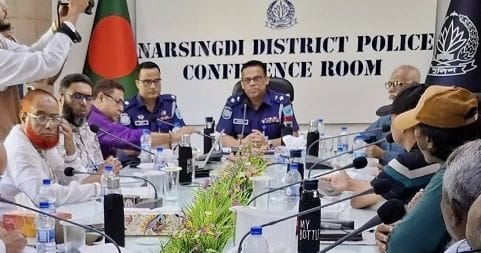 মোঃ কামাল হোসেন প্রধান ,জেলা প্রতিনিধি নরসিংদীঃ নরসিংদীতে পুলিশ সুপার এর সম্মেলন কক্ষে মতবিনিময় সভায় পুলিশ সুপার মোঃ মেনহাজুল আলম বলেন নরসিংদীতে পুলিশ এর টহল নজরদারি বাড়ানো হয়েছে। এ ছাড়াও চুরি,ছিনতাই,মাদক উদ্ধারে নিয়মিত অভিযান পরিচালিত হচ্ছে বলেন জেলার পুলিশ সুপার মোঃ মেনহাজুল আলম। অদ্য ২৩ সেপ্টেম্বর ২০২৫ ইং মঙ্গলবার পুলিশ সুপার এর সম্মেলন কক্ষে সাংবাদিকদের সাথে মতবিনিময় সভায় এ কথা বলেন। বক্তব্যে তিনি বলেন পুলিশ সুপার জেলার আইনশৃঙ্খলা উন্নয়ন কর্মকাণ্ডে সাংবাদিকদের সহযোগিতা কামনা করে বলেন,সার্বিক পরিস্থিতি নিয়ন্ত্রণে সাংবাদ কর্মীদের ভূমিকা রয়েছে। আপনারা সবসময় বস্তুনিষ্ঠ তথ্য দিয়ে আমাদের সহযোগিতা করবেন।তিনি জেলার আইন শৃঙ্খলার পরিস্থিরি কথা উল্লেখ করে বলেন,চলতি মাসে জেলায় পৃথক পৃথক পাঁচটি ঘটনায় সাত জন খুনের ঘটনার মধ্যে পারিবারিক দ্বন্দ্বে তিনজন,ব্যবসায়িক দ্বন্দ্বে একজন ও আধিপত্য বিস্তারকে কেন্দ্র করে তিনজন খুন হয়েছে। এ সংক্রান্তে সর্বমোট ছয়টি মামলা দায়ের করা হয়েছে এবং ইতিমধ্যে আট জনকে গ্রেপ্তার করেছেন। বাকি আসামিদের গ্রেপ্তারে পুলিশী অভিযান অব্যাহত রয়েছে। অন্যান্য ঘটনায়ও ব্যবস্থা নেওয়া হচ্ছে। জেলার পুলিশ এর টহল নজরদারি বাড়ানো হয়েছে। চুরি,ছিনতাই, মাদক উদ্ধারে নিয়মিত অভিযান চলমান রয়েছে।তিনি বলেন,আমরা কাজ করছি,জনগণের সাথে কথা বলছি,কোথায় কী সমস্যার কারণে ঘটনা ঘটছে, সমস্যার সমাধান করার চেষ্টা করছি। জেলার কোথায় কোন ধরনের অপরাধ সংঘটিত হয়, আমরা সেসব সমস্যা রোধেও কাজ করছি। সবার সহযোগিতা নিয়ে আমরা একটি শান্তিপূর্ণ জেলা গড়তে চাই। এ বিষয় আমাদের জেলা প্রশাসন,সেনাবাহিনী ও অন্যান্য সংস্থা ও সহযোগিতা করছে,আমরা সাংবাদিকদেরও সহযোগিতা চাই। এছাড়া সাম্প্রদায়িক সম্প্রীতি বজায় রেখে সুষ্ঠু,সুন্দর পরিবেশে আসন্ন দুর্গাপূজা সম্পন্ন করতে সবার সহযোগিতা কামনা করছি।এ সময় অতিরিক্ত পুলিশ সুপার (প্রশাসন ও অর্থ) মোঃ কলিমুল্লাহ, অতিরিক্ত পুলিশ সুপার (অপরাধ) সুজন চন্দ্র সরকার বক্তব্য রাখেন সাংবাদিক দের পক্ষ থেকে নরসিংদী প্রেস ক্লাবের সাবেক সভাপতি নিবারণ রায়, আব্দুর রহমান ভূইয়া, মাখন দাস, সাধারণ সম্পাদক মোবারক হোসেন,সাবেক সাধারণ সম্পাদক এম এ আওয়াল সহ বিভিন্ন প্রিন্ট ও ইলেকট্রনিক মিডিয়ার সাংবাদিকগন উপস্থিত ছিলেন।