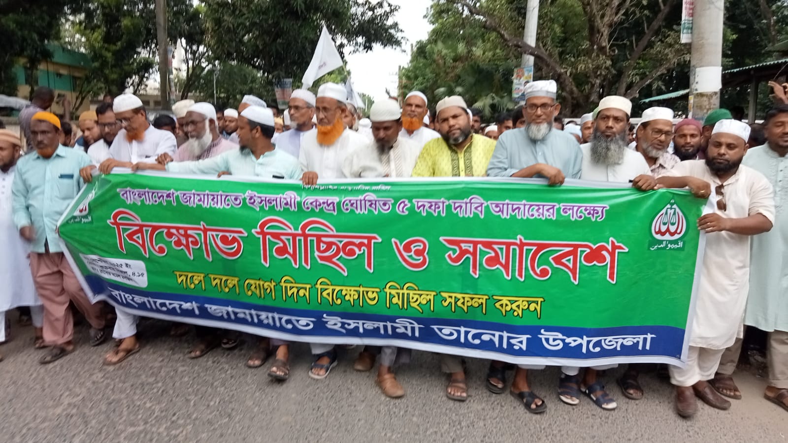সোহানুল হক পারভেজ, রাজশাহী বিভাগীয় প্রধানঃ রাজশাহীর তানোরে কেন্দ্রীয় কর্মসূচির অংশ হিসেবে পাঁচ দফা দাবিতে বিক্ষোভ মিছিল ও সমাবেশ করেছে তানোর উপজেলা জামায়াতে ইসলামী।শুক্রবার(২৬ সেপ্টেম্বর) বিকেল সাড়ে ৪টায় ৫দফা বাস্তবায়নের দাবিতে একটি বিশাল মিছিল উপজেলা কেন্দ্রীয় মসজিদ থেকে শুরু করে থানা মোড় হয়ে তানোর গোল্লাপাড়া বাজার ফুটবল মাঠে পথসভা অনুষ্ঠিত হয়।বিক্ষোভ মিছিলে নেতৃত্ব দেন, বাংলাদেশ জামাতে ইসলামী তানোর উপজেলা শাখার আমির মাওলানা আলমগীর হোসেন।উপজেলা জামায়াতের সেক্রেটারি ডিএম আক্কাস আলীর সভাপতিত্বে উক্ত সমাবেশে প্রধান অতিথির বক্তব্য রাখেন রাজশাহী শ্রমিক কল্যাণ ফেডারেশনের সভাপতি অধ্যাপক মাওলানা জামিনুর রহমান।তিনি তার বক্তব্যে ৫ দফা দাবি উত্থাপন করেন,জনগণের অধিকার প্রতিষ্ঠায় জামায়াত ঘোষিত পাঁচ দফা দাবি বাস্তবায়ন জরুরি।দাবি গুলো হলো১.জুলাই জাতীয় সনদের ভিত্তিতে আগামী ফেব্রুয়ারিতে জাতীয় নির্বাচন আয়োজন।২.জাতীয় সংসদের উভয় কক্ষে পিআর পদ্ধতি চালু।৩.অবাধ,সুষ্ঠু ও গ্রহণযোগ্য নির্বাচনের জন্য সবার জন্য সমান সুযোগ নিশ্চিত।৪.ফ্যাসিস্ট সরকারের জুলুম-নির্যাতন,গণহত্যা ও দুর্নীতির বিচার দৃশ্যমান করা।৫.স্বৈরাচারের দোসর জাতীয় পার্টি ও ১৪ দলের কার্যক্রম নিষিদ্ধ ঘোষণা।বিশেষ অতিথি হিসেবে উপস্থিত ছিলেন ওলামা বিভাগের মাওলানা মোহাম্মদ সিরাজুল ইসলাম।আরো উপস্থিত ছিলেন মোহাম্মদ আব্দুর রহিম,উপজেলা চেয়ারম্যান পদপ্রার্থী, এডভোকেট আব্দুল কাদের,ভাইস চেয়ারম্যান পদপ্রার্থী, মাওলানা আনিসুর রহমান,মেয়র পদপ্রার্থী, মুন্ডুমালা পৌরসভা,ডা.সেকেন্দার আলী,চেয়ারম্যান পদপ্রার্থী,কলমা ইউনিয়ন,মোহাম্মদ জুয়েল রানা,চেয়ারম্যান পদপ্রার্থী, কামারগাঁও ইউনিয়ন মাওলানা মোকসেদ আলী,আমীর, তানোর পৌরসভা,জুয়েল উদ্দিন,সেক্রেটারি,তানোর পৌরসভা অধ্যাপক মাওলানা আনোয়ারুল ইসলাম, চেয়ারম্যান পদপ্রার্থী, বাঁধাইড় ইউনিয়ন মাওলানা মোঃ আফজাল হোসাইন,চেয়ারম্যান পদপ্রার্থী,সরঞ্জয় ইউনিয়ন এছাড়াও উপস্থিত ছিলেন শিক্ষক,শ্রমজীবী,কৃষকসহ এলাকার গণ্যমান্য ব্যক্তিবর্গ।জনগণের ন্যায্য অধিকার প্রতিষ্ঠা ও গণতন্ত্র পুনরুদ্ধারে এই আন্দোলন চলবে ইনশাআল্লাহ।
