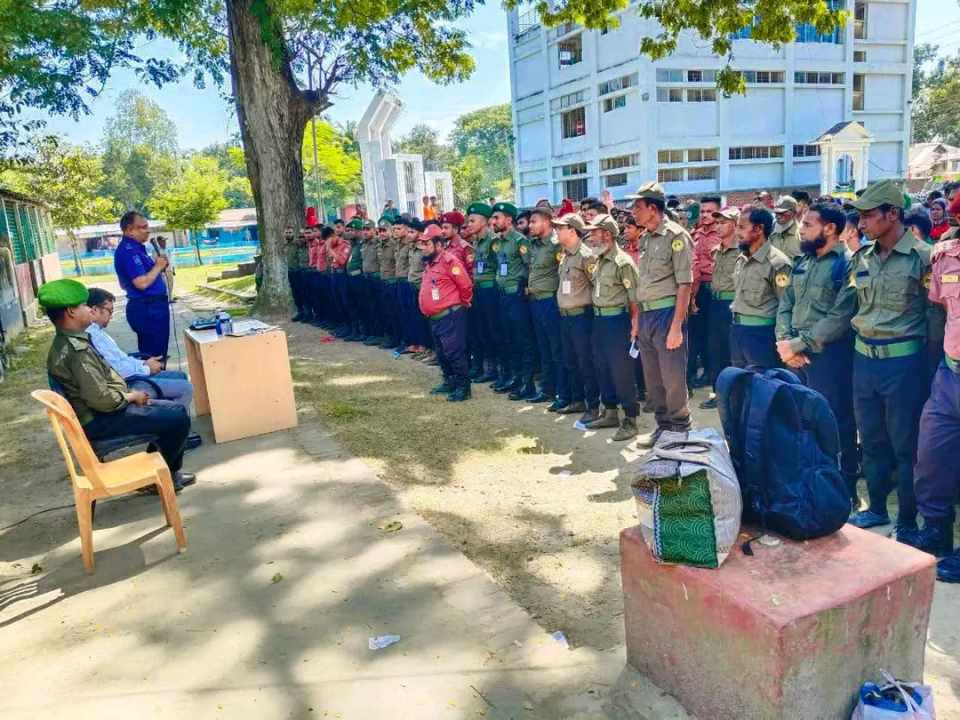 মোঃ সাগর সরকার ,স্টাফ রিপোর্টার: হিন্দু সম্প্রদায়ের প্রধান ধর্মীয় উৎসব সারদীয় দূর্গাপুজা উপলক্ষে গাইবান্ধার পলাশবাড়ীতে ৫৭টি মন্দিরে সার্বিক নিরাপত্তা নিশ্চিত করতে দায়িত্ব পালন করছে উপজেলার আনসার-ভিডিপির সদস্যরা। পলাশবাড়ী পৌরশহরসহ উপজেলার ৮টি ইউনিয়নের প্রত্যেকটি পূজা মন্ডপে দিন-রাত ২৪ঘন্টা পালাক্রমে দায়িত্বপালন করবেন আনসার সদস্যরা। ২৭ সেপ্টেম্বর শনিবার সকালে পলাশবাড়ী উপজেলা আনসার-ভিডিপির অফিস প্রাঙ্গনে মাঠে সমবেতন আনসার সদস্যদের দিক-নির্দেশনামূলক বক্তব্য প্রদান করেন উপজেলা নির্বাহী অফিসার নাজমুল আলম। তিনি বলেন,মন্দির সমূহে যে কোন ধরণে অপ্রীতিকর ঘটনা এড়াতে নিজেদের মধ্যে যোগাযোগ স্থাপনসহ আনসার সদস্যদের সব সময় সজাগ থাকতে হবে। আরো বক্তব্য রাখেন,পলাশবাড়ী অফিসার ইনচার্জ (ওসি) জুলফিকার আলী ভুট্টো’ও উপজেলা আনসার ভিডিপি প্রশিক্ষক কনক। তিনি জানান,২৭ সেপ্টেম্বর থেকে ২ অক্টোবর পর্যন্ত উপজেলার ৫৭টি মন্দিরে মোট ৩৪৪ জন আনসার সদস্য নিয়োজিত থাকবে।