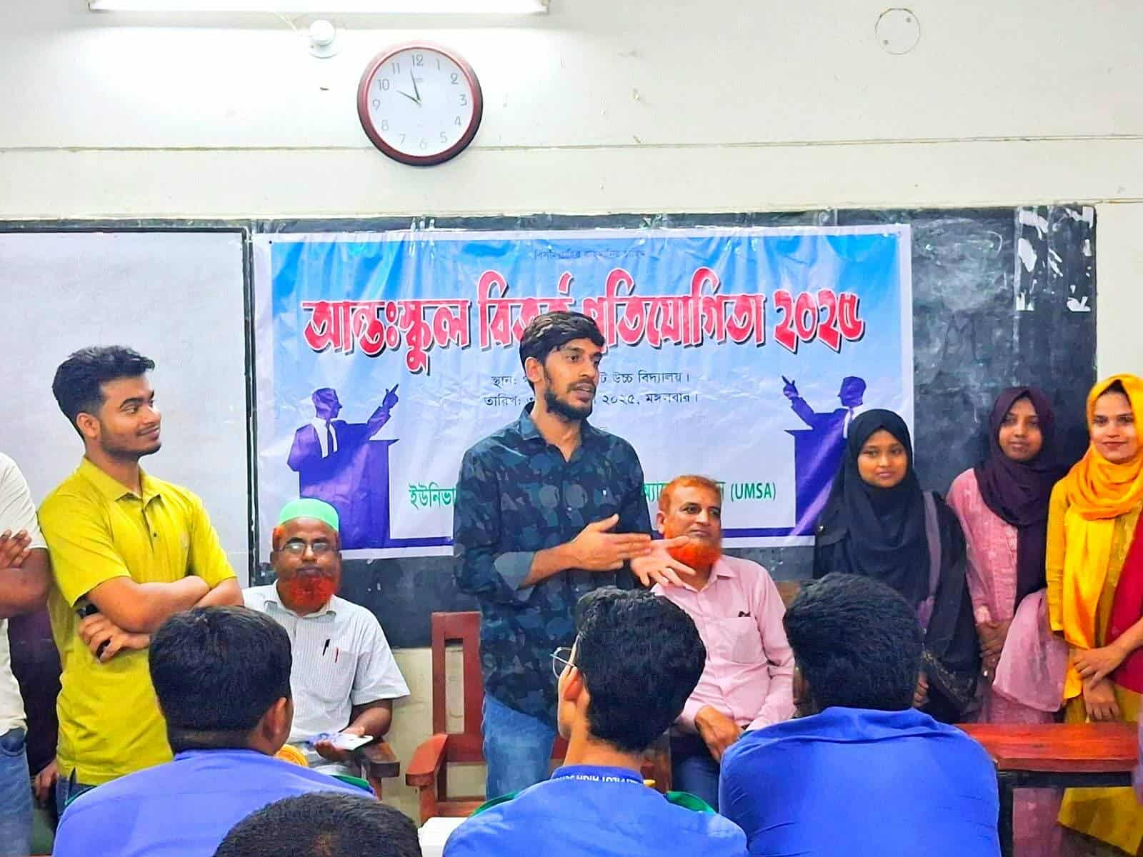আহসান হাবিব শিবলু, বগুড়া প্রতিনিধি: বগুড়া গাবতলীতে ইউনিভার্সিটি এন্ড মেডিকেল স্টুডেন্ট অ্যাসোসিয়েশন (UMSA) এর আয়োজনে আন্তঃস্কুল বিতর্ক প্রতিযোগিতা ২০২৫ উৎসবমুখর পরিবেশে সফলভাবে সম্পন্ন হয়েছে। অনুষ্ঠানে প্রধান অতিথি হিসেবে উপস্থিত ছিলেন জনাব ডা. মামুন সরকার, এমবিবিএস, বিসিএস (স্বাস্থ্য)। তিনি বলেন, বর্তমান প্রজন্মকে যুক্তি, প্রমাণ ও জ্ঞানের আলোকে এগিয়ে নিতে বিতর্ক প্রতিযোগিতার কোনো বিকল্প নেই। এই আয়োজন শিক্ষার্থীদের সৃজনশীলতা, আত্মবিশ্বাস ও মুক্তচিন্তার বিকাশে গুরুত্বপূর্ণ ভূমিকা রাখবে। বিশেষ অতিথিদের মধ্যে গাবতলী পাইলট উচ্চ বিদ্যালয়ের প্রধান শিক্ষক জনাব এমদাদুল হক, মড়িয়া আরএমপি উচ্চ বিদ্যালয়ের প্রধান শিক্ষক, সিলেট ইন্টারন্যাশনাল বিশ্ববিদ্যালয়ের লেকচারার সুরাইয়া শবনম এবং ঢাকা মেডিকেল কলেজ হাসপাতালের রেসিডেন্ট ডা. সাবিহা সুলতানা রুপা শিক্ষার্থীদের অনুপ্রেরণামূলক বক্তব্য প্রদান করেন। আয়োজক কমিটির সভাপতি হাসান মাহমুদ (ঢাকা বিশ্ববিদ্যালয়) বলেন, গাবতলীর মেধাবী শিক্ষার্থীদের জন্য এমন আয়োজন নিয়মিতভাবে করা হবে। আমরা চাই, গ্রামের স্কুলের শিক্ষার্থীরাও জাতীয় পর্যায়ে প্রতিভা দেখাতে পারুক। সাধারণ সম্পাদক সেলিম রেজা (শাহজালাল বিজ্ঞান ও প্রযুক্তি বিশ্ববিদ্যালয়) বলেন,এই প্রতিযোগিতার মাধ্যমে শিক্ষার্থীরা শুধু যুক্তি প্রদর্শন নয়, বরং দলগতভাবে কাজ করা, শ্রদ্ধাশীলভাবে ভিন্নমত গ্রহণ করা এবং আত্মবিশ্বাস অর্জনের কৌশল শিখেছে। প্রতিযোগীদের বক্তব্য, বিতর্কে অংশ নেওয়া প্রতিযোগীরা তাদের অনুভূতি প্রকাশ করতে গিয়ে বলেন, বিতর্ক প্রতিযোগিতায় অংশগ্রহণ করে আমরা শুধু জ্ঞান অর্জন করিনি, বরং সাহসের সঙ্গে যুক্তি তুলে ধরতে শিখেছি। আজকের অভিজ্ঞতা আমাদের ভবিষ্যতে জাতীয় ও আন্তর্জাতিক মঞ্চে প্রতিযোগিতায় অংশ নিতে অনুপ্রেরণা যোগাবে। আমরা চাই, প্রতি বছর এ ধরনের প্রতিযোগিতা আয়োজন করা হোক, যাতে আরও বেশি শিক্ষার্থী নিজেদের মেধা বিকশিত করতে পারে। প্রতিযোগিতার সার্বিক আয়োজন ও তত্ত্বাবধান করেন আহ্বায়ক টিমের সদস্যরা,ওবায়দুল শিশির, আসিফ তমাল ও সাদিয়া আক্তার। বিচারক হিসেবে দায়িত্ব পালন করেন বিশ্ববিদ্যালয় ও মেডিকেল পড়ুয়া মেধাবী শিক্ষার্থীরা। অংশগ্রহণকারী শিক্ষা প্রতিষ্ঠানসমূহের মধ্যে ছিল,গাবতলী সরকারি বালিকা উচ্চ বিদ্যালয়, গাবতলী পাইলট উচ্চ বিদ্যালয়, গাবতলী আলিম মাদ্রাসা, মড়িয়া আরএমপি উচ্চ বিদ্যালয়, বাগবাড়ি এস ইউ ফাজিল মাদ্রাসা, মাজবাড়ি দ্বিমুখী উচ্চ বিদ্যালয়, নেপালতলী উচ্চ বিদ্যালয়, সোন্দাবাড়ী উচ্চ বিদ্যালয়, দূর্গাহাটা ফাজিল মাদ্রাসা এবং বাগবাড়ি ফাজিল মাদ্রাসা। ফলাফলে, গাবতলী পাইলট উচ্চ বিদ্যাল