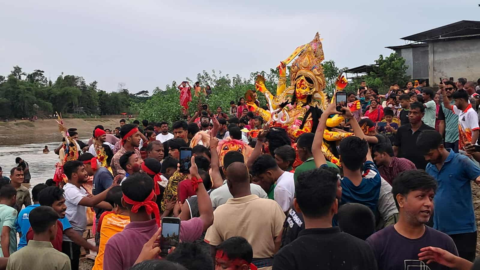 মোঃ শামীম মিয়া ,স্টাফ রিপোর্টার : জামালপুর জেলার দেওয়ানগঞ্জ উপজেলায় নানা আয়োজন ও ধর্মীয় আনুষ্ঠানিকতার মধ্য দিয়ে শেষ হয়েছে সনাতন ধর্মাবলম্বীদের দুর্গাপূজার কার্যক্রম। বিজয়া দশমীর দিন প্রতিমা বিসর্জন ও শান্তিপূর্ণভাবে শেস হয়েছে পূজার সব আয়োজন। বৃহস্পতিবার (২ অক্টোবর) সকালে বিভিন্ন পূজামণ্ডপে সাড়ম্বরে দেবীর পূজা ও অঞ্জলি প্রদান শেষে শুরু হয় বিসর্জনের প্রস্তুতি। ভক্ত, পূজারী ও দর্শনার্থীদের পদচারণায় মুখর হয়ে পূজা মণ্ডপ। এ সময় নারী-পুরুষ, শিশু ও প্রবীণরা অঞ্জলি প্রদান ও পূজার নানা আচার-অনুষ্ঠানে অংশ নেন। দিনভর ছিল শোভাযাত্রা, সাংস্কৃতিক অনুষ্ঠান, ভক্তিমূলক গান ও ধর্মীয় আলোচনার আয়োজন। সন্ধ্যায় দেওয়ানগঞ্জ মডেল থানার সামনে ব্রহ্মপুত্র নদে প্রতিমা বিসর্জনের মধ্য দিয়ে শেষ হয় দুর্গাপূজার আনুষ্ঠানিকতা। বিসর্জন শোভাযাত্রায় অংশ নেয় স্থানীয় পূজা উদযাপন কমিটির নেতৃবৃন্দসহ হাজারো ভক্ত। উপজেলার বিভিন্ন পূজা মণ্ডপ ঘুরে দেখা গেছে, পূজা উপলক্ষে সর্বত্র ছিল আনন্দ-উচ্ছ্বাস ও উৎসবমুখর পরিবেশ। স্থানীয় প্রশাসন, আইন-শৃঙ্খলা বাহিনী ও স্বেচ্ছাসেবকরা সার্বক্ষণিক নিরাপত্তা নিশ্চিত করায় কোনো ধরনের অপ্রীতিকর ঘটনা ঘটেনি। পূজা উদযাপন পরিষদের নেতারা জানান, শান্তিপূর্ণভাবে দুর্গোৎসব সম্পন্ন হওয়ায় তারা আনন্দিত। সকলের সহযোগিতা ও প্রশাসনের তৎপরতায় পূজা নির্বিঘ্নে শেষ হয়েছে বলে তারা সন্তোষ প্রকাশ করেন। দেওয়ানগঞ্জে এ বছর ২৪টি মণ্ডপে দুর্গাপূজা অনুষ্ঠিত হয়। সব মণ্ডপেই পুলিশ, আনসার, গ্রাম পুলিশসহ প্রয়োজনীয় নিরাপত্তা ব্যবস্থা ছিল। কিছু কিছু মণ্ডপে স্থাপন করা হয় সিসি ক্যামেরাও। দেওয়ানগঞ্জ মডেল থানা অফিসার ইনচার্জ (ওসি) নাজমুল হাসান বলেন, ‘দশমীতে প্রতিমা বিসর্জনের সময় কঠোর নিরাপত্তা ব্যবস্থা ছিল।’ ‘সবাই সার্বিক সহযোগিতা করেছে, এ বছর দেওয়ানগঞ্জে কোন অপ্রীতিকর ঘটনা ঘটেনি এবং শান্তি শৃঙ্খলায় পূজা উদযাপিত হয়েছে।’