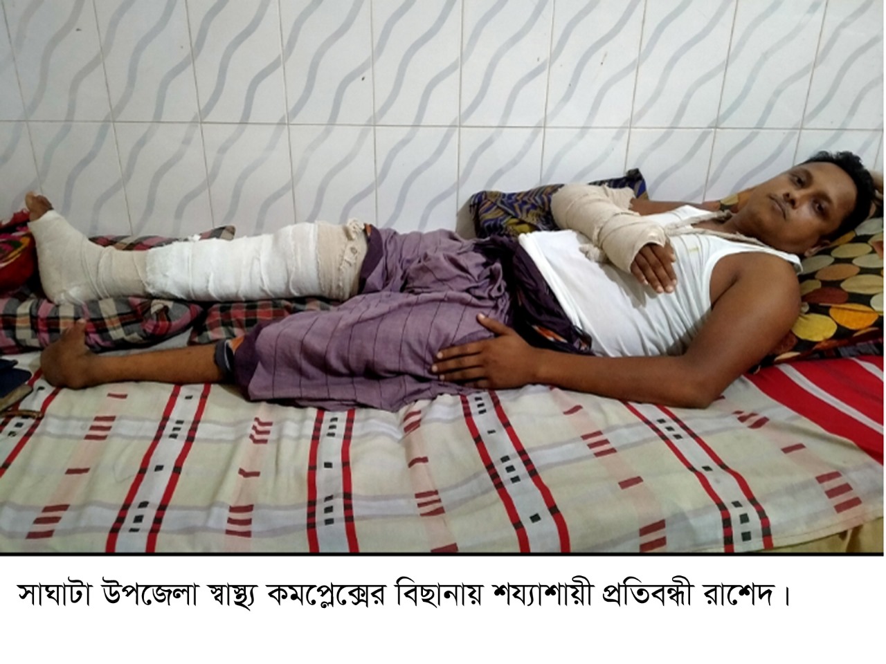 সাঘাটা (গাইবান্ধা) প্রতিনিধি: গাইবান্ধার সাঘাটায় হামলা চালিয়ে রাশেদ মোল্লা (৩৮) নামে এক প্রতিবন্ধীর হাত-পা ভেঙে দিয়েছে দুর্বৃত্তরা । গত ২৬ সেপ্টেম্বর রাত অনুমান ৮ টার দিকে উপজেলার ঘুড়িদহ ইউনিয়নের সাঘাটা-বোনারপাড়া সড়ক সংলগ্ন খগেনের মোড় নামক স্থানে এ ঘটনা ঘটে। রাশেদ সাঘাটা ইউনিয়নের হাসিলকান্দি গ্রামের বাসিন্দা আব্দুর রাজ্জাক মোল্লার ছেলে। বর্তমানে গুরুতর আহত অবস্থায় প্রতিবন্ধী রাশেদ সাঘাটা উপজেলা স্বাস্থ্য কমপ্লেক্সে চিকিৎসাধীন রয়েছেন। শ্বশুর পরিবারে সাথে বিরোধের সূত্রে ধরেই দুর্বৃত্তরা এই ঘটনা ঘটিয়েছে বলে অভিযোগ উছেছে। এব্যাপরে সাঘাটা থানায় একটি এজাহার দায়ের করা হয়েছে।স্থানীয়রা জানান, গত ২৬ সেপ্টেম্বর ঘুড়িদহ গ্রামে সরকার পাড়া এলাকায় এক আত্মীয়র বাড়িতে দাওয়াত খেতে গিয়ে খাওয়ার একটু বিলম্ব হওয়ায় সুযোগে প্রতিবন্ধী রাশেদ তার একজন সাথীকে নিয়ে পাশ্ববর্তী সাঘাটা-বোনারপাড়া সড়কের পার্শে খগেনের মোড়ে একটি স্টলে চা খেতে যায়। সেখানে চা খাওয়ার সময় হঠাৎ করে ১১/১২ জনের একটি সংঘবন্ধ দল দেশীয় অস্ত্র-শস্ত্র লাটি সোঠা নিয়ে রাশেদের ওপর হামলা করে। হামলায় তার ডান হাত,ডান পা ভেঙে যায় এবং গুরুতরভাবে আহত হয়। এসময় রাশেদের আত্মচিৎকারে উপস্থিত লোকজন তাকে সাথে সাথে উদ্ধার করে সাঘাটা উপজেলা স্বাস্থ্য কমপ্লেক্সে ভর্তি করে। প্রতিবন্ধী রাশেদের স্ত্রী রাশেদা বেগম বলেন, আগে থেকেই আমার স্বামীর বাম-পা টি অচল, ডান-পায়ে কোনো রকমে চলা ফেরা করে। প্রতিবন্ধী স্বামীর সাথে আমার সম্পর্ক চ্ছিন্ন করাতে ব্যর্থ হয়ে আমার পিতার পরিবারর, আমার ও আমার স্বামীর বিরুদ্ধে হুমকি ধামকিসহ নানা ষড়যন্ত্র করে আসছে। পূর্বের শত্রুতার জের ধরেই বেদম মারপিট করে তারা আমার স্বামীর এই অবস্থা করেছে। আহত রাশেদ-এর বর্তমান অবস্থা জানতে চাইলে,সাঘাটা উপজেলা স্বাস্থ্য কমপ্লেক্সের স্বাস্থ্য পরিবারপরিকল্পনা কর্মকর্তা মোঃ ইলতুতমিশ আকন্দ (পিন্টু) জানান, বগুড়ায় হাত-পায়ের প্লাষ্টার করা হয়েছে। এখানে চিকিৎসাধীন রয়েছে রাশেদ। বগুড়ার রিপোটে হাড় ভাঙা রয়েছে। বর্তামানে চিকিৎসা চলছে।