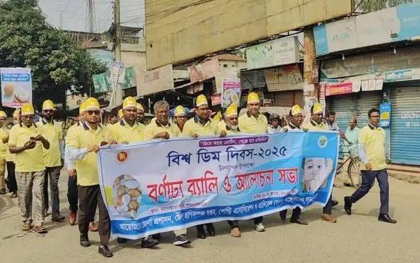 মোঃ ইব্রাহিম সরকার, লালমনিরহাট: লালমনিরহাটে “ডিমে আছে প্রোটিন, খেতে হবে প্রতিদিন” প্রতিপাদ্যকে সামনে রেখে বিশ্ব ডিম দিবস-২০২৫ উদযাপন উপলক্ষে বর্ণাঢ্য র্যালি, আলোচনা সভা ও সুলভ মূল্যে নিরাপদ ডিম বিক্রয় অনুষ্ঠান অনুষ্ঠিত হয়েছে। শুক্রবার (১০ অক্টোবর) সকাল ১০টায় জেলা প্রশাসন, জেলা প্রাণিসম্পদ দপ্তর, পোল্ট্রি এসোসিয়েশন ও এ্যানিমেল হেলথ এসোসিয়েশন লালমনিরহাটের আয়োজনে কালেক্টরেট মাঠে এ আয়োজন অনুষ্ঠিত হয়। অনুষ্ঠানে সভাপতিত্ব করেন লালমনিরহাট জেলা প্রাণিসম্পদ অফিসার ডাঃ মোঃ জাহাঙ্গীর আলম এবং সঞ্চালনা করেন সদর উপজেলা প্রাণিসম্পদ কর্মকর্তা ডাঃ মোঃ বেলাল হোসেন। আলোচনা সভায় প্রধান অতিথি হিসেবে বক্তব্য রাখেন লালমনিরহাট জেলা প্রশাসক এইচ এম রকিব হায়দার। বিশেষ অতিথি হিসেবে উপস্থিত ছিলেন অতিরিক্ত জেলা প্রশাসক (সার্বিক) মোঃ রাসেল মিয়া, অতিরিক্ত পুলিশ সুপার (প্রশাসন ও অর্থ) মোঃ শাহাদত হোসেন সুমা বিপিএম-বার, জেলা মৎস্য কর্মকর্তা মোঃ সরোয়ার জামান, ভেটেরিনারি অফিসার মোঃ এনামুল হক, জেলা ট্রেইনিং অফিসার মোঃ মুহিব্বুর রহমান, জেলা পোল্ট্রি খামার মালিক সমিতির সভাপতি শেখ মোঃ মঞ্জুরুল আলম, সাধারণ সম্পাদক মোঃ ফারহান তানভীর উল্লাস এবং এনিমেল হেলথ মার্কেটিং এসোসিয়েশন লালমনিরহাটের সভাপতি মোঃ মুন্না প্রমুখ। এ সময় জেলা প্রশাসন ও প্রাণিসম্পদ দপ্তরের কর্মকর্তা-কর্মচারী, খামারি, ব্যবসায়ী ও স্থানীয় সাংবাদিকরা উপস্থিত ছিলেন। এর আগে সকাল ৯টায় একটি বর্ণাঢ্য র্যালি কালেক্টরেট মাঠের সামনে থেকে বের হয়ে শহরের প্রধান প্রধান সড়ক প্রদক্ষিণ করে একই স্থানে এসে শেষ হয়। পরে সাধারণ মানুষের মাঝে সিদ্ধ ডিম বিতরণ ও সুলভ মূল্যে নিরাপদ ডিম বিক্রয় কার্যক্রম পরিচালনা করা হয়।